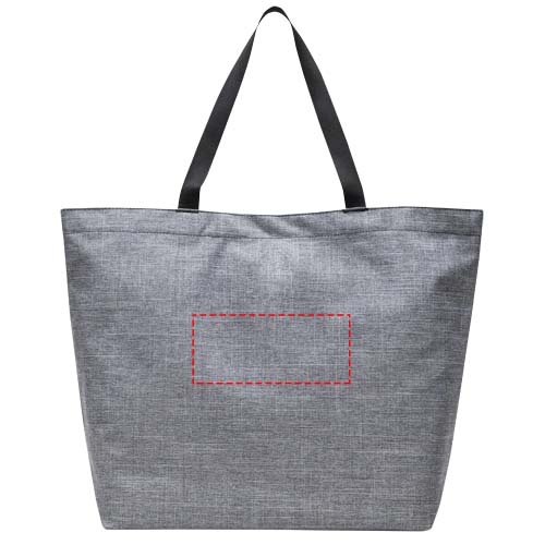 Yksinkertaisen muotoilun ja kierrätettyjen materiaalien ansiosta tämä arjen sankarilaukku sopii jokaiseen käyttötarpeeseen. Kassi on valmistettu EcoSystem™ 600D -kankaasta ja vuorista, jotka on valmistettu sataprosenttisesti kierrätetyistä käytetyistä vesipulloista. Kangaskassissa on metallinen nepparikiinnitys ja sileät nauhalliset kantokahvat äärimmäisen mukavuuden takaamiseksi.