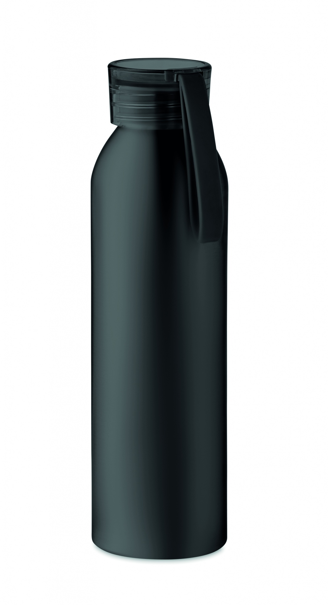 Yksiseinäinen alumiinipullo kierrätetystä alumiinista muovikorkilla ja silikoniripustimella. Tilavuus: 600ml. Yksinkertainen ja kevyt pullo on ihanteellinen päivittäiseen käyttöön, ja se sopii erinomaisesti lisäämään brändisi näkyvyyttä. On tärkeää pysyä nesteytettynä päivän aikana, joten täytä tämä pullo vedellä ja pidä se aina mukana! Vuotamaton.