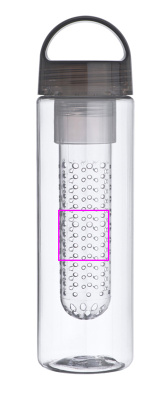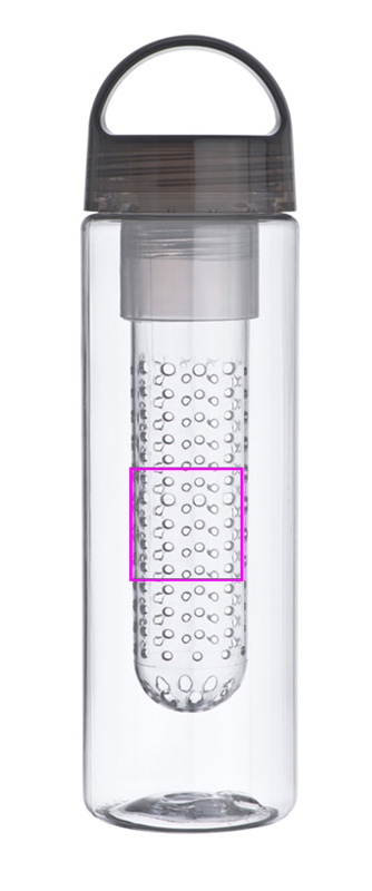 Muovinen juomapullo, jossa infusori (esim.) hedelmille ja tilavuus 650 ml. Painamme logosi pulloon.