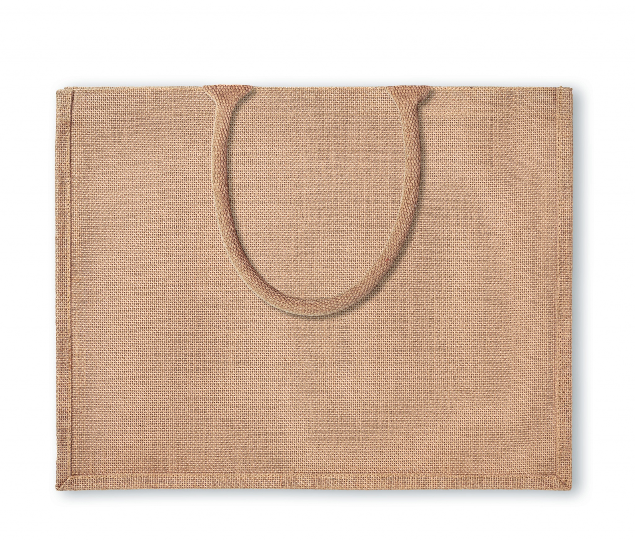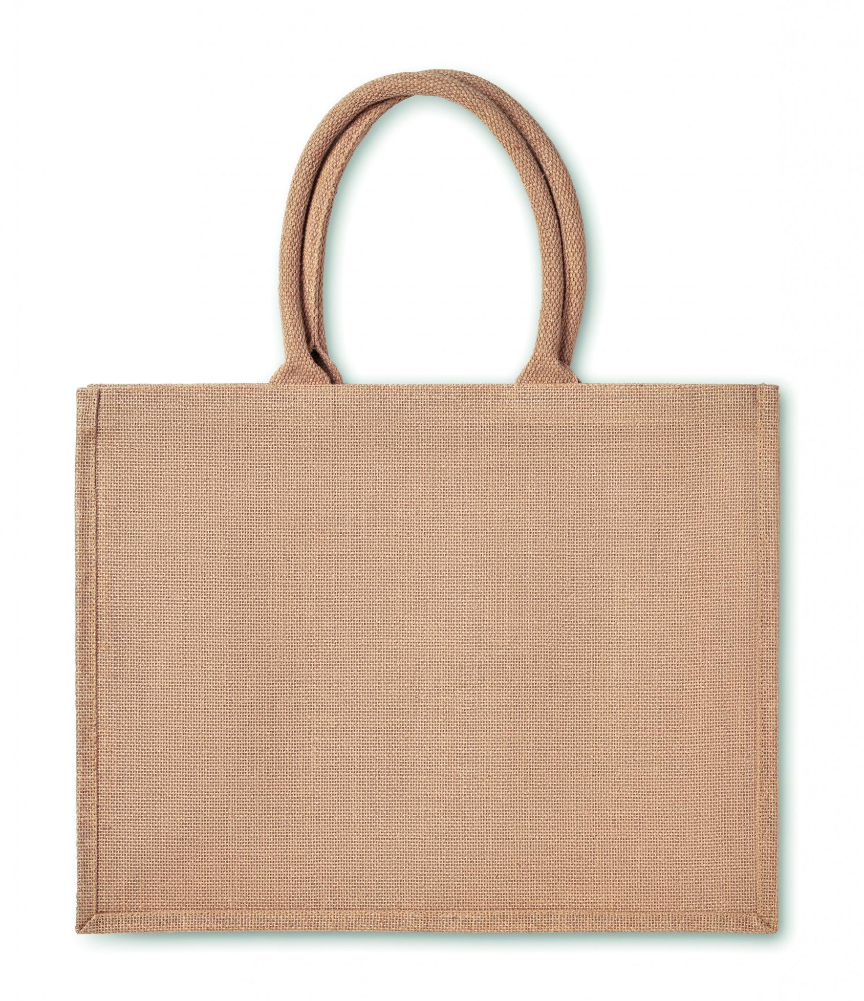 Laminoitu juuttikassi, lyhyillä puuvilla kahvoilla.