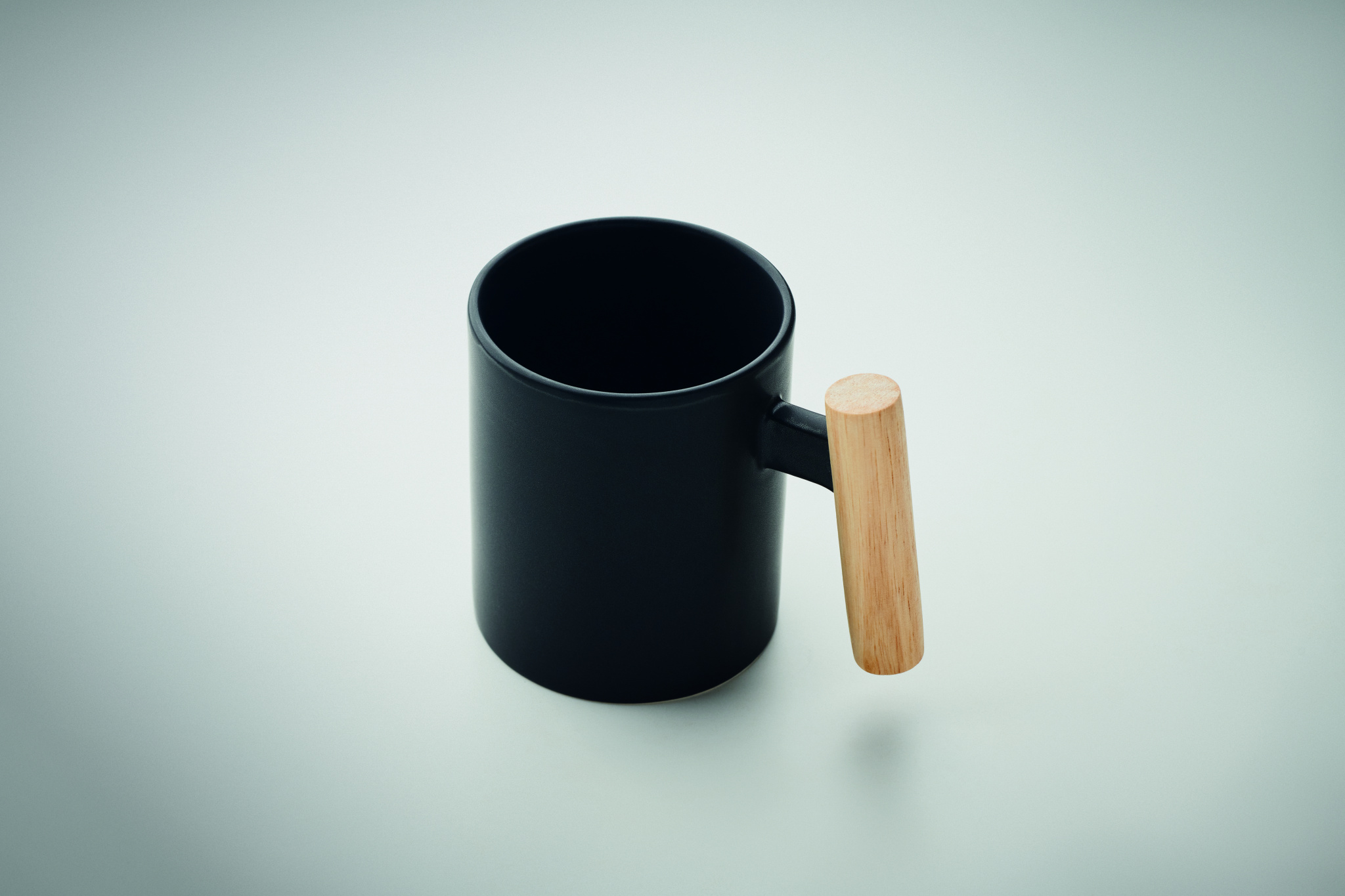 Keraaminen muki puisella kahvalla. Tilavuus: 320 ml. Yksittäin pakattu valkoiseen pahvilaatikkoon.