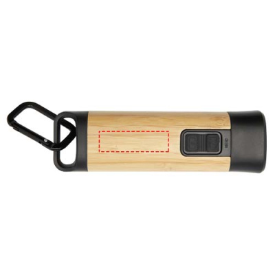 Logo trade mainoslahja ja liikelahja tuotekuva: Kuma bambusta / RCS-kierrätetystä muovista valmistettu taskulamppu karabiinihaalla