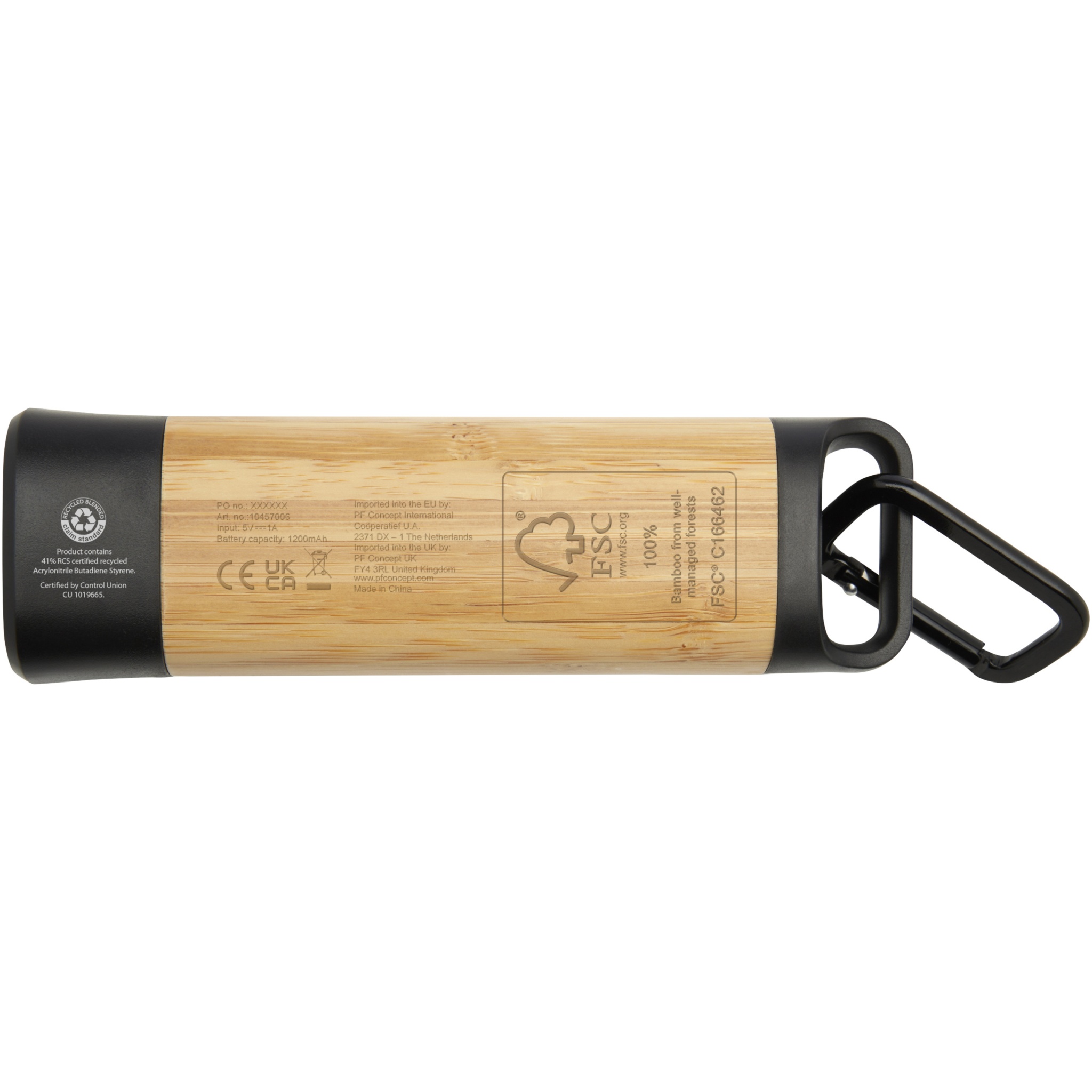 Kuma bambusta / RCS-kierrätetystä muovista valmistettu taskulamppu karabiinihaalla