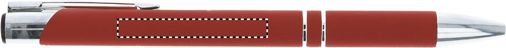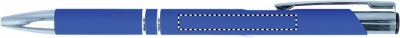 Painomekanismilla toimiva kuulakärkikynä sinisellä musteella, kuminen viimeistely.