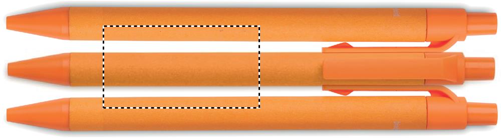 Kuulakärkikynä sinisellä musteella, paperirungolla ja 100% PLA-maissi osilla.