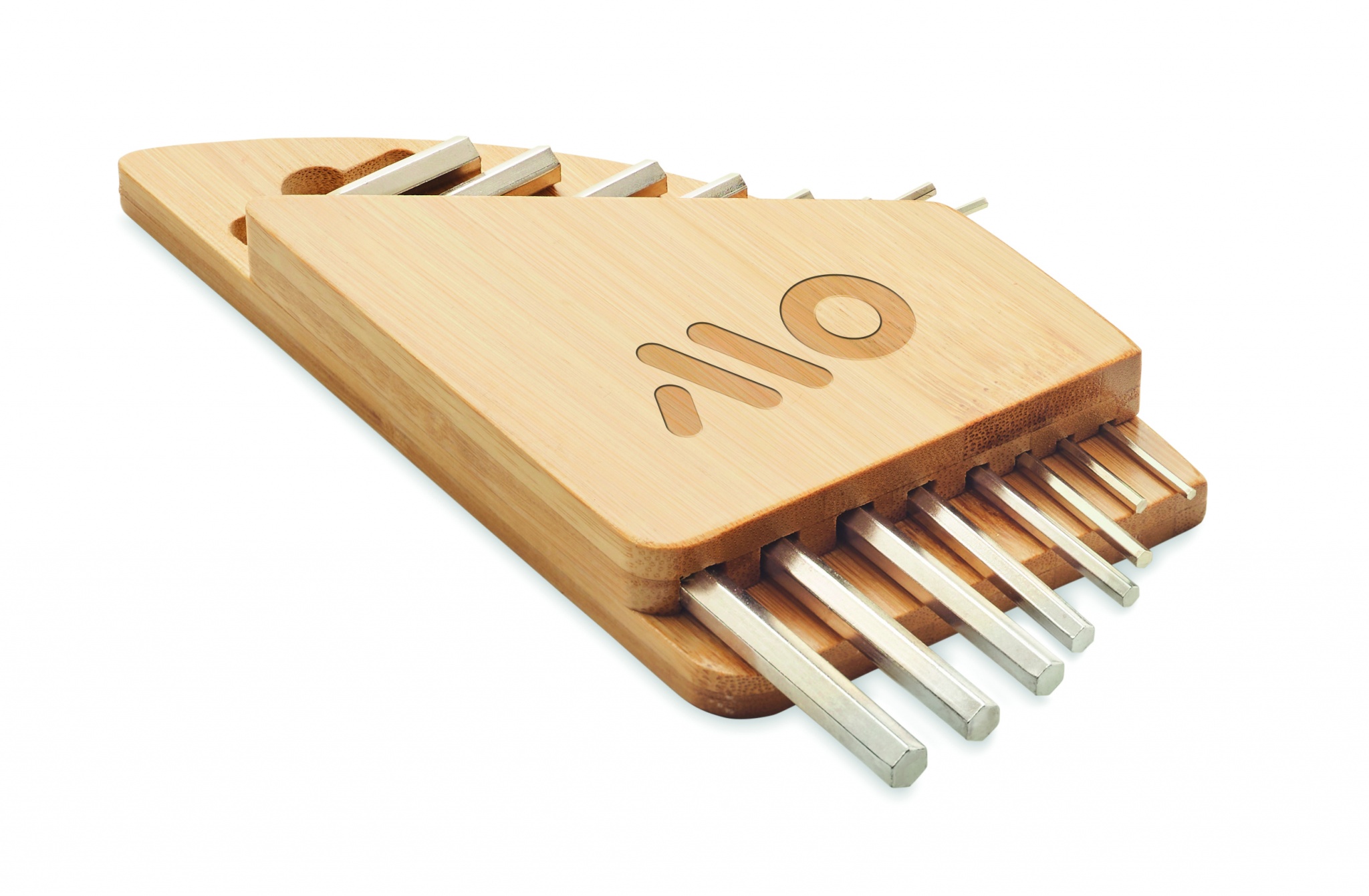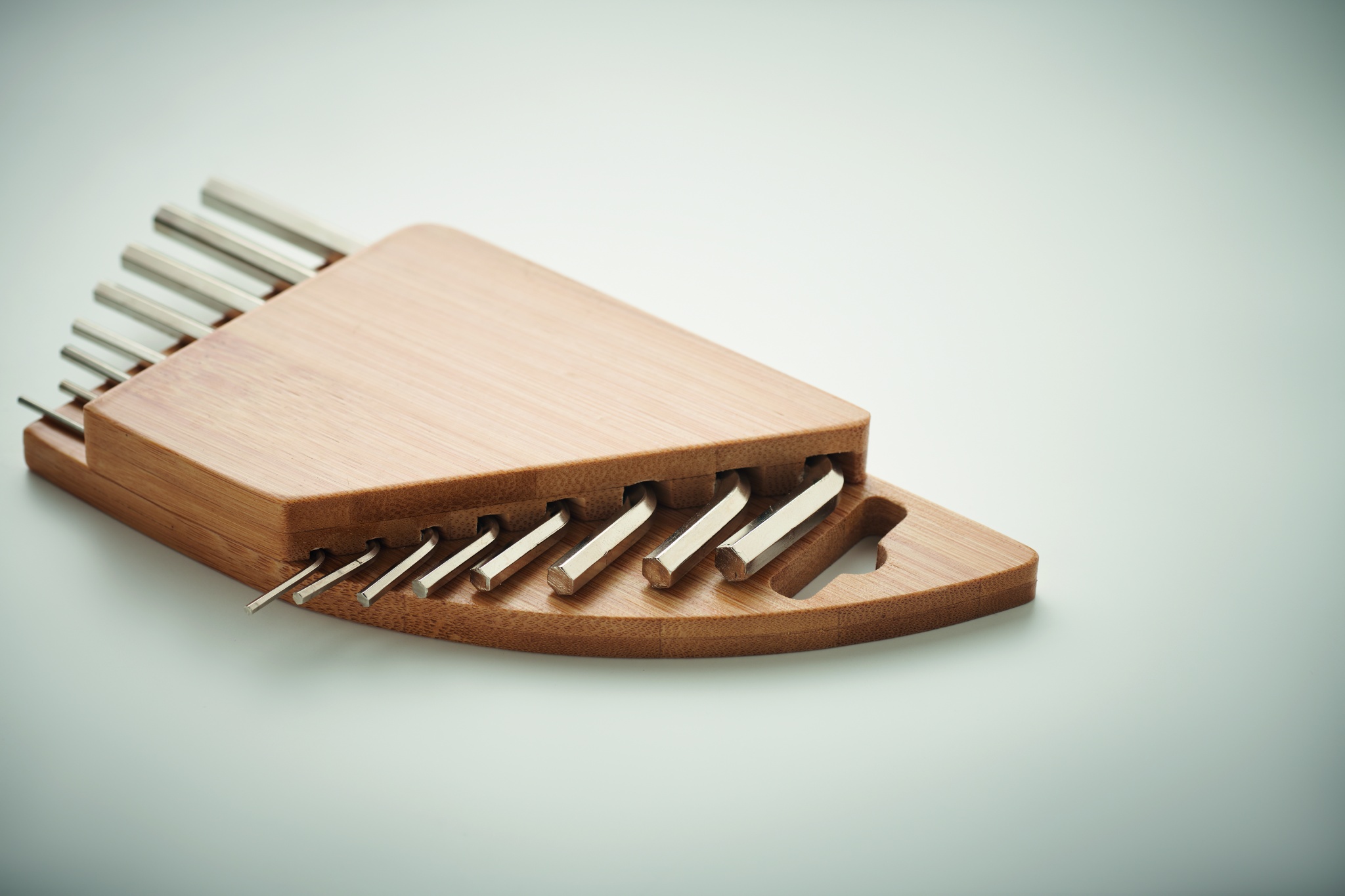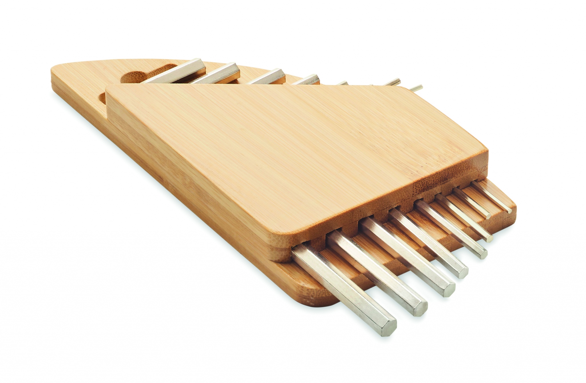 Kuusiokoloavainsarja bambutelineessä, sisältää kuusiokoloavaimen hiiliteräksestä nikkelipinnoituksella. Koot 1.5mm - 2mm - 2.5mm - 3mm - 4mm - 5mm - 5.5mm - 6mm.