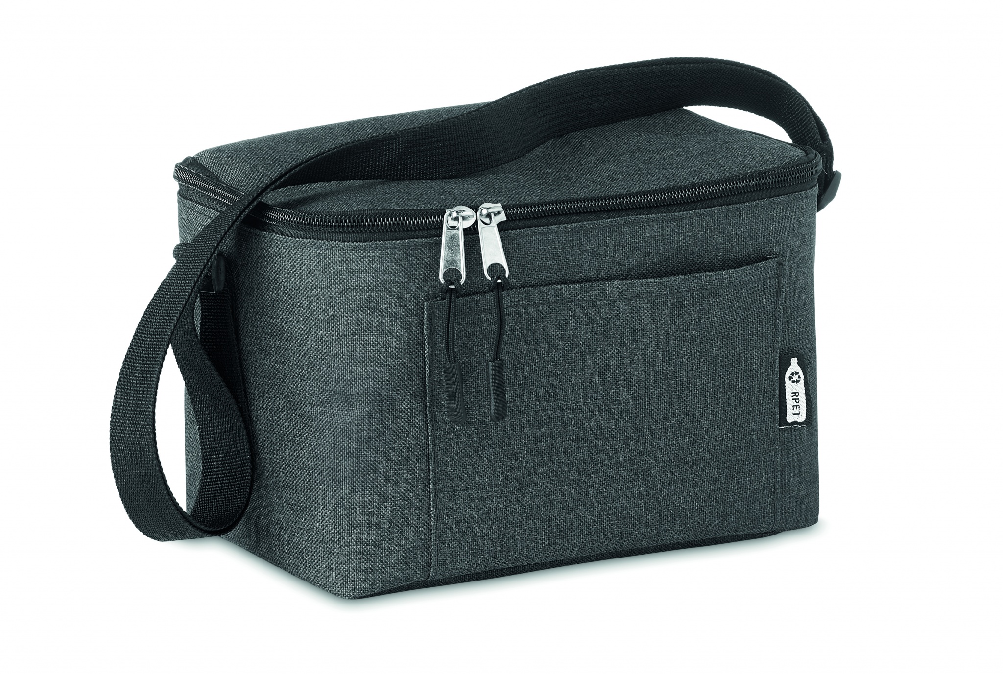 3 litran 2- sävyinen 600D RPET kylmälaukku 6 tölkille, edessä tasku. Eristysmateriaalina 0,15mm EVA ja 3mm vaahtomuovia.