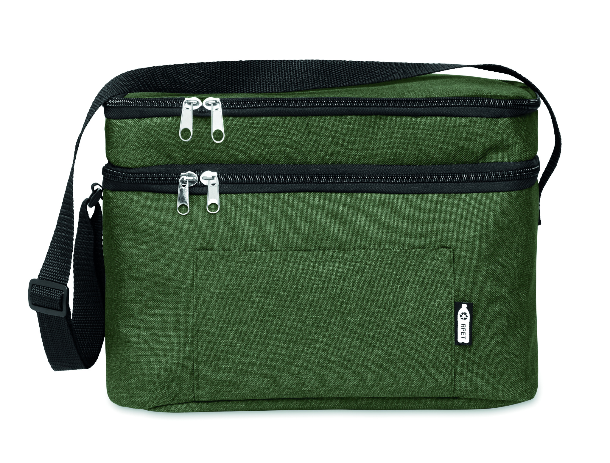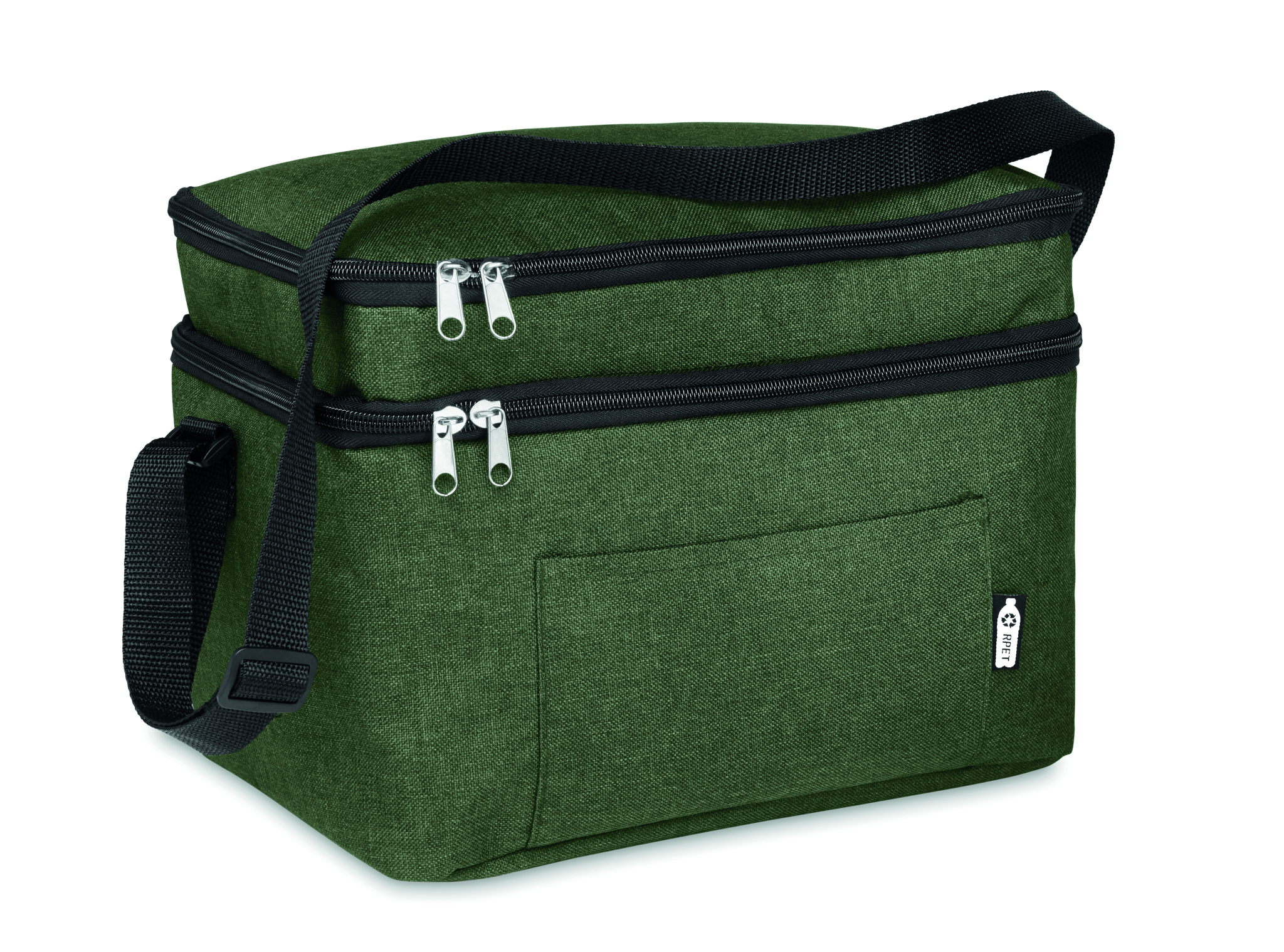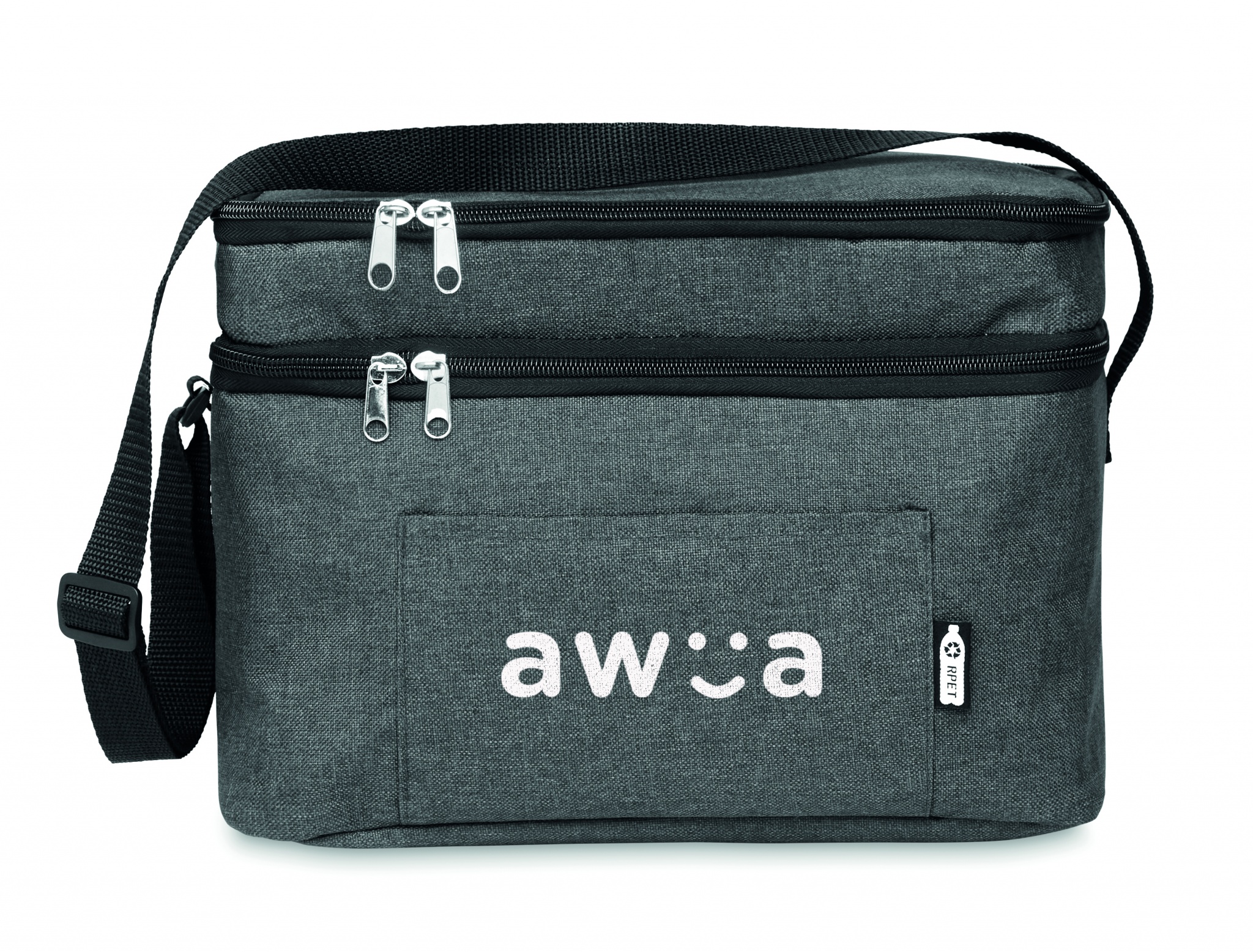600D RPET 2- sävyinen kylmälaukku, 2 lokerolla ja PEVA vuorella. Sisältää taskun edessä ja säädettävän olkahihnan. Eristysmateriaalina 0,15mm PEVA + 3 mm vaahtomuovia.