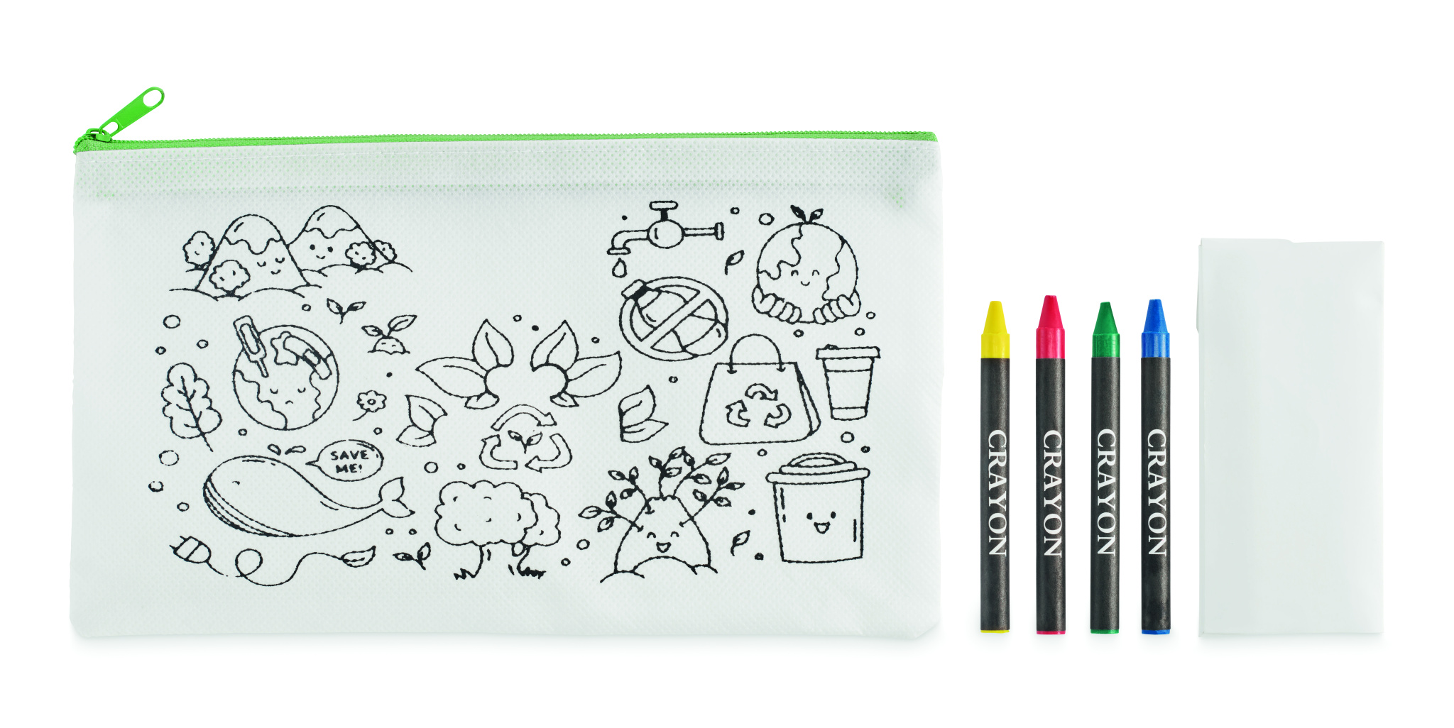 Kuitukankaasta valmistettu penaali, joka sisältää 4 väriliitua.