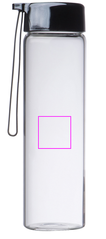 Lasipullo PP-kannella ja täyttökapasiteetti 450 ml. Logosi kaiverretaan lasiin.