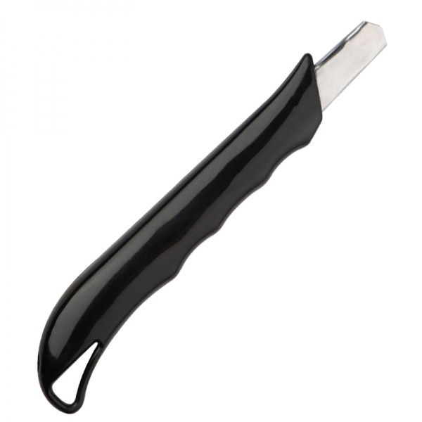 Välttämätön leikkausveitsi - vakaalla metallikotelolla. Terä voidaan vaihtaa useita kertoja. Painamme logosi takapuolelle.