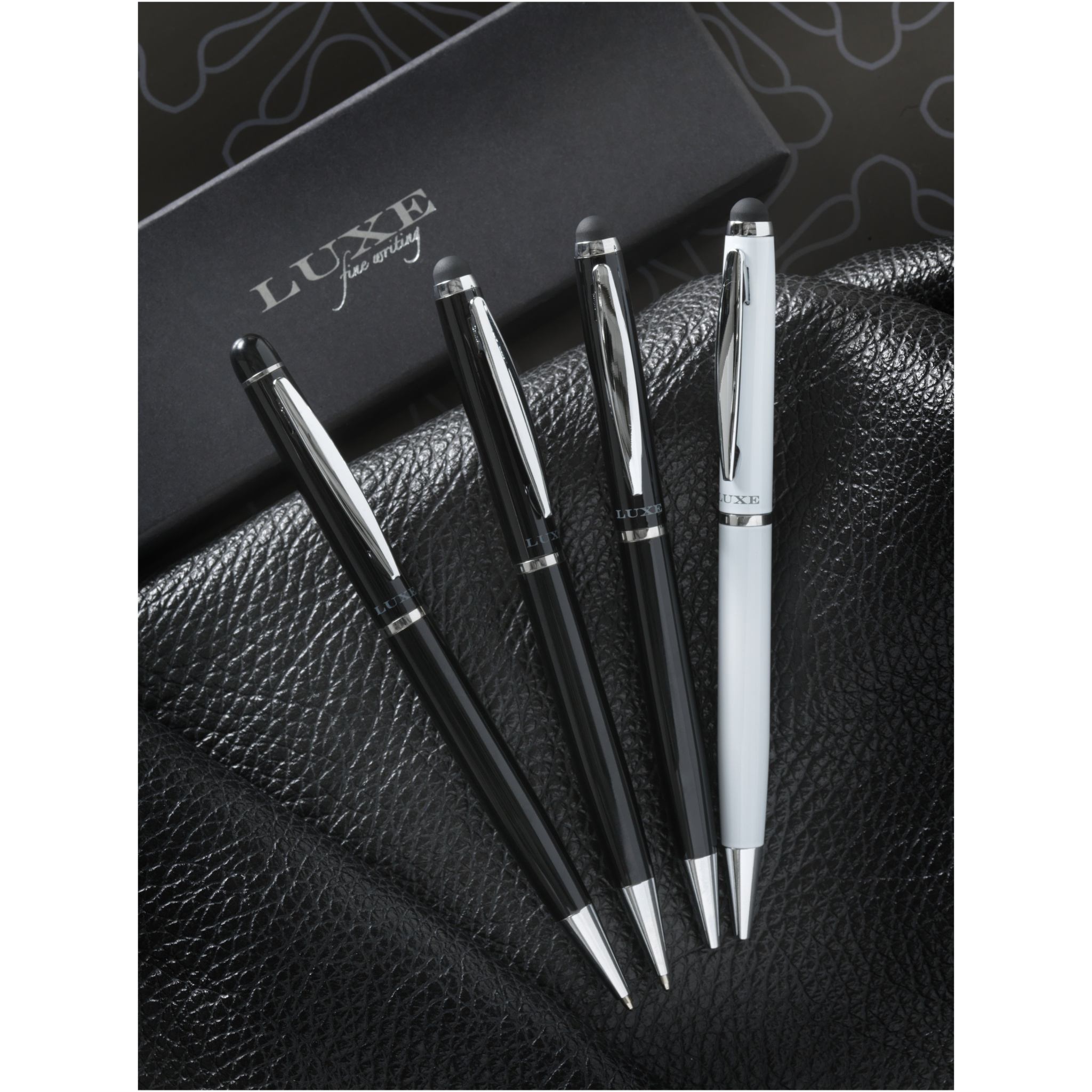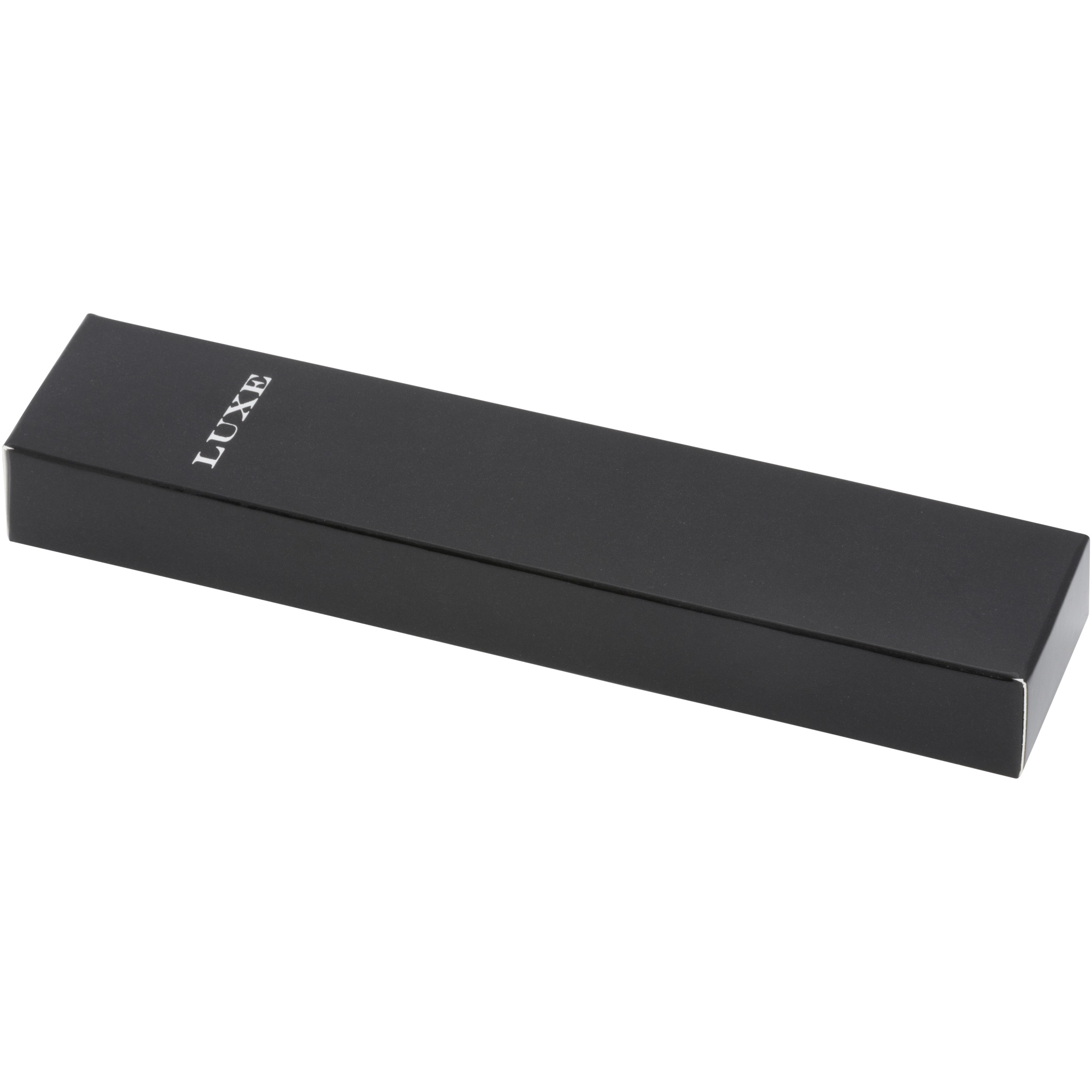 Ylellisesti muotoiltu kierretoimintamekanismilla toimiva stylus-kuulakärkikynä samettipussilla. Pakattu ''LUXE''-lahjapakkaukseen (koko: 17 x 3.5 x 2 cm).