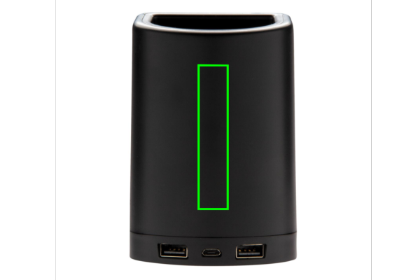 Lataa mobiililaitteesi yhdistämättä kaapelia tällä ainutlaatuisella kaksi toimintoa yhdessä sisältävällä työpöydän lisävarusteella. Laita vain matkapuhelimesi alustalle ja odota latausilmoituksen näkymistä. Voit myös säilyttää laturissa kirjoitustarvikkeitasi, kuten kuulakärki- ja lyijykyniä. Laturiin on myös mahdollista yksilöidä oma logosi, joka valaistaan optimaalista näkyvyyttä varten. Yhteensopiva kaikkien QI-laitteiden kanssa, kuten uusimman Android-sukupolven laitteiden sekä iPhone 8:n ja sitä uudempien kanssa. Tuloteho: 5V / 3A. Langaton lähtöteho: 5 V / 1 A, 5 W. Sisältää 150 cm:n micro-USB-johdon.