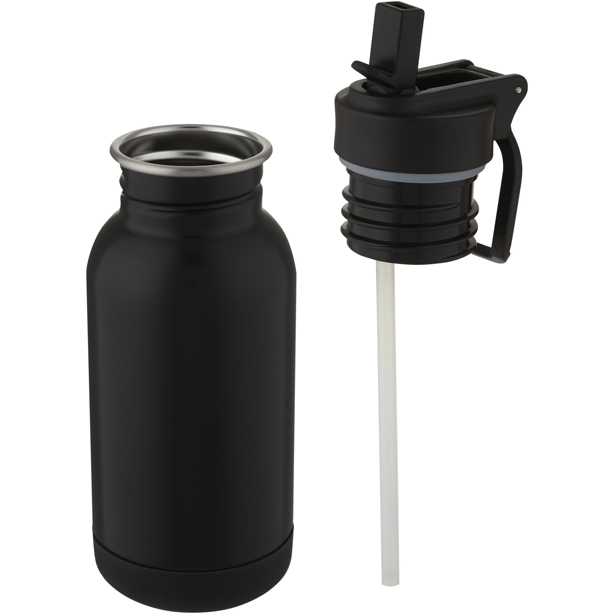 Lina 400 ml ruostumaton teräspullo, jossa on pilli ja lenkki, Tasainen musta