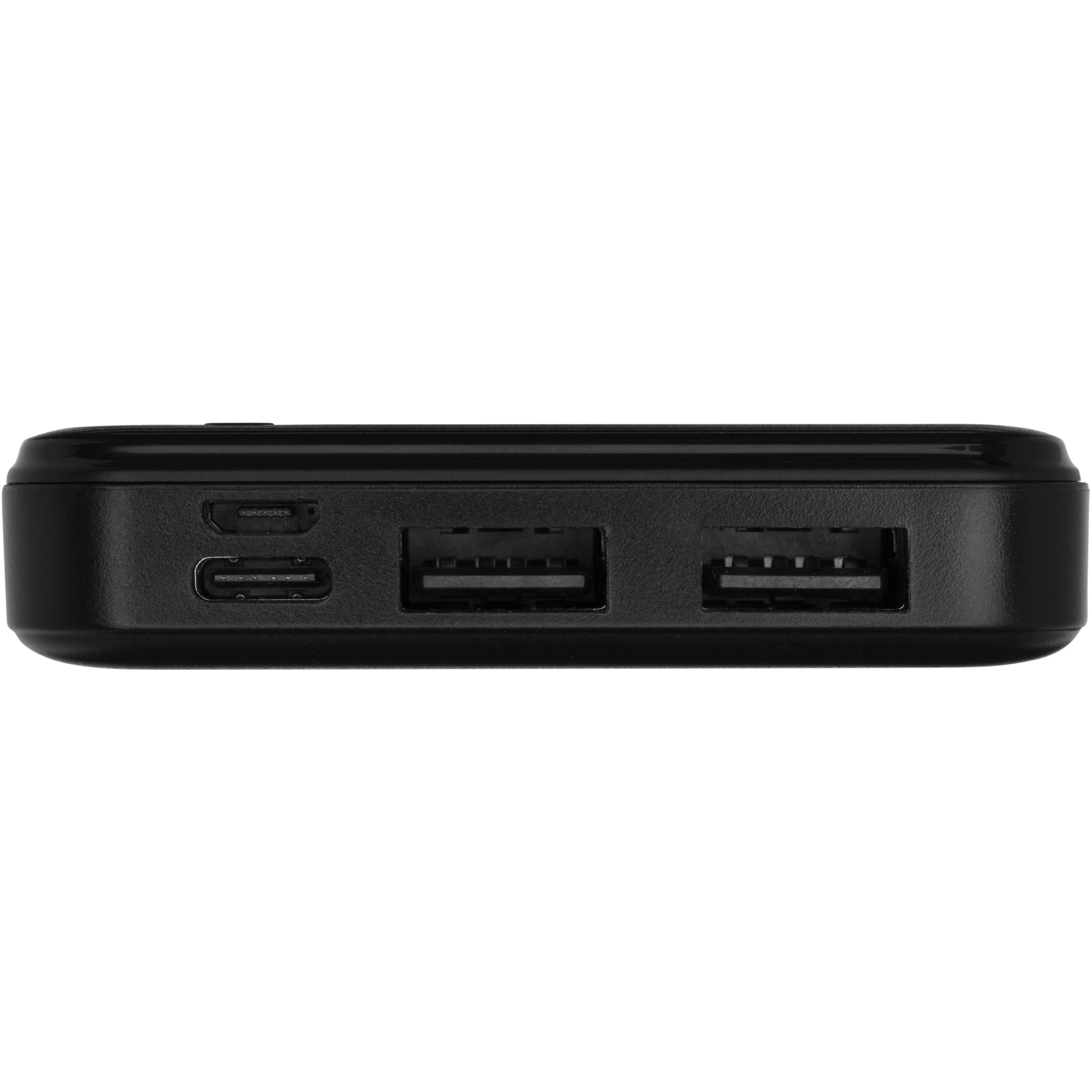 Kierrätetystä ABS-muovista valmistettu varavirtalähde. Varavirtalähde sisältää pitkäikäisen A-luokan 10 000 mAh:n litiumpolymeeriakun pikalatausta varten. Merkkivalot näyttävät jäljellä olevan energiatason, joten tiedät aina, milloin ladata. Type-C-tulo 5 V/2 A, Micro-USB-tulo 5 V/2 A, kaksi USB-A-lähtöä 5 V/2 A, kokonaisteho 10 W. Mukana toimitetaan 30 cm:n TPE 2A USB-A - Type-C -latauskaapeli, käyttöohje ja voimapaperista valmistettu lahjapakkaus.
