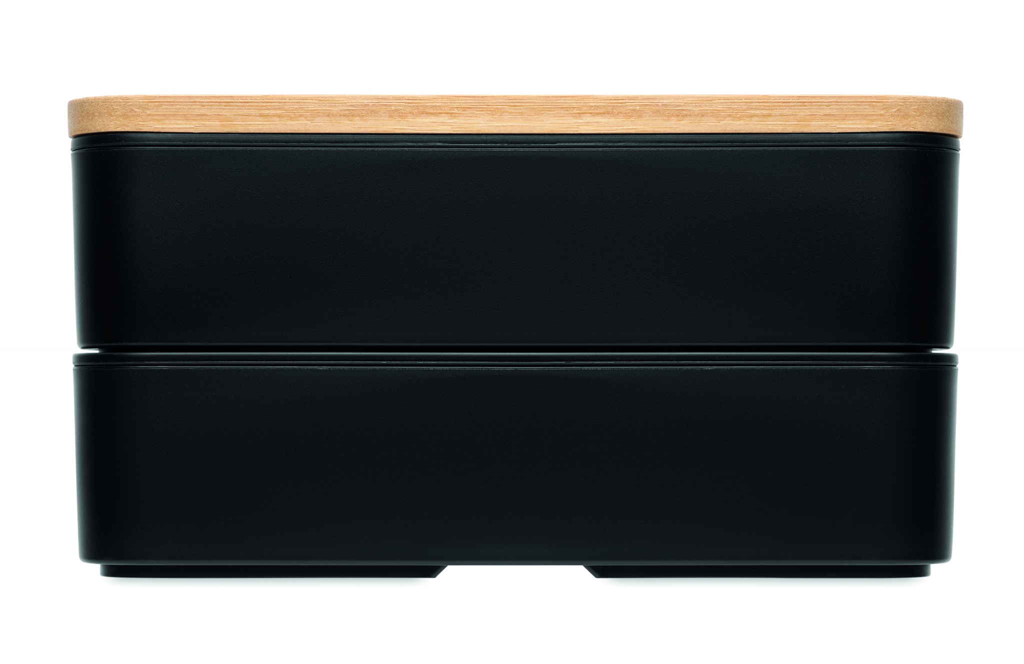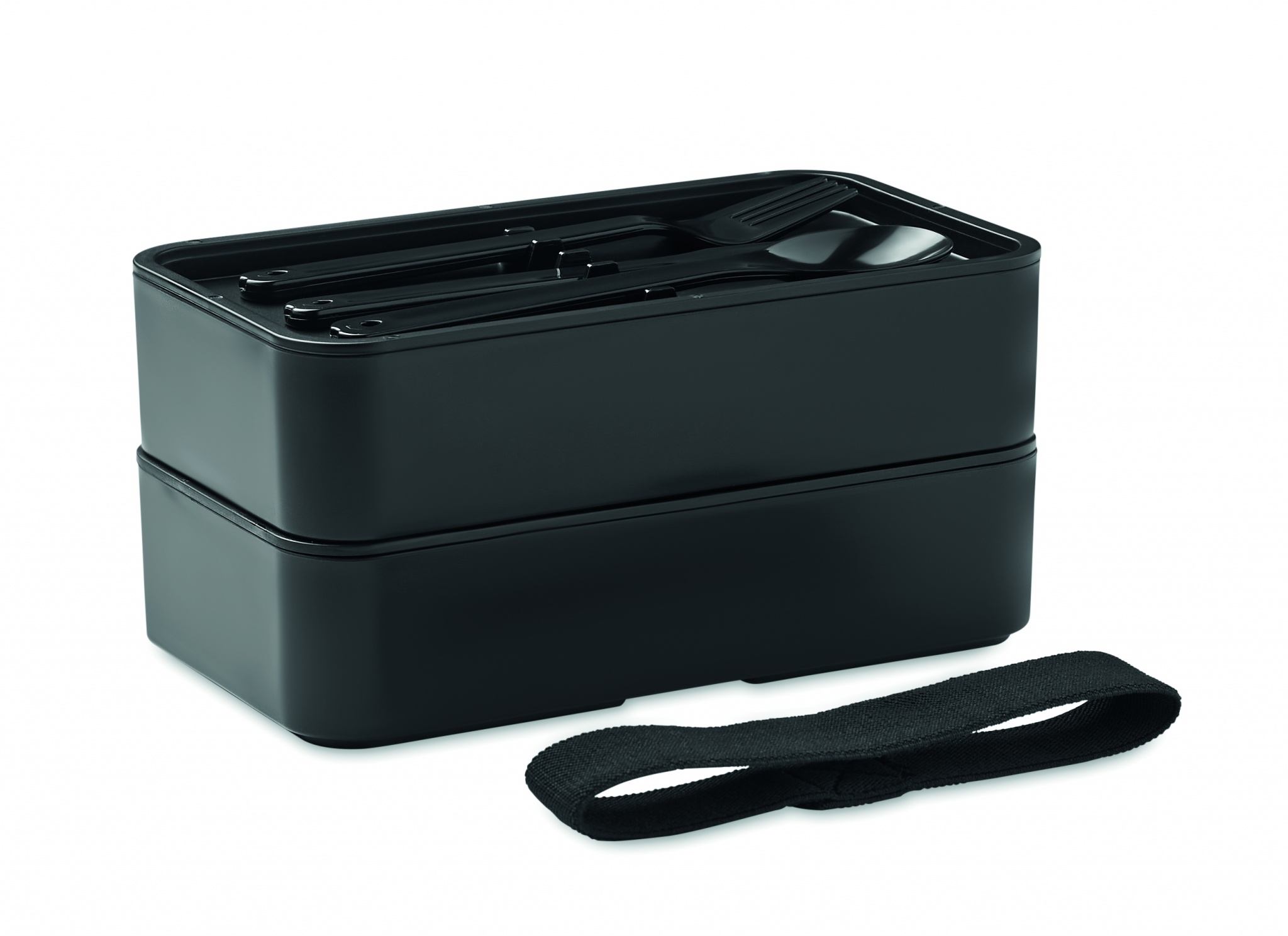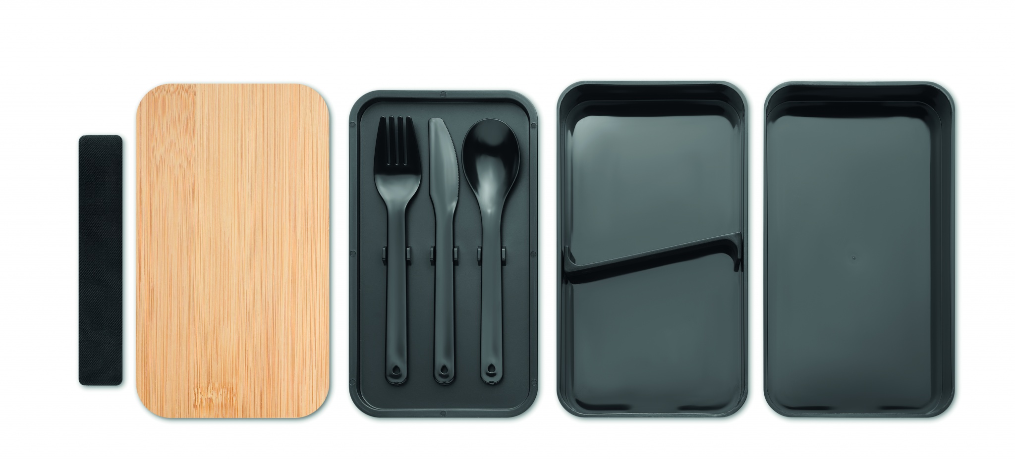 PP-kaksikerroksinen 400 ml lounaslaatikko bambu kannella, sisältää 3 ruokailuvälinettä.