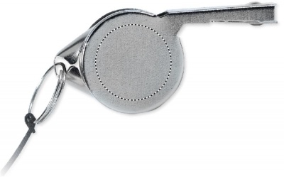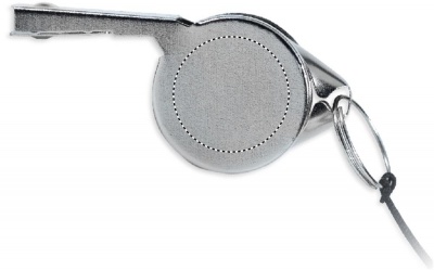 Metallinen pilli joss naru. Narussa turvalukko.