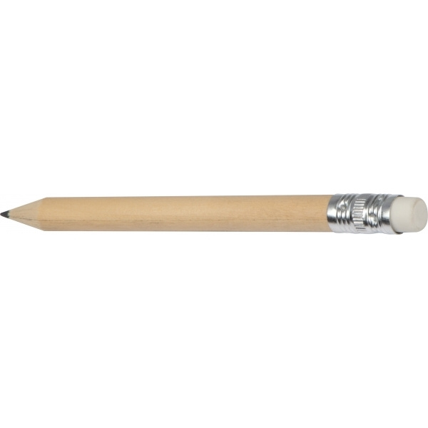 Puusta valmistettu minikynä pyyhekumilla. Kynä tulee esiteroitettuna.