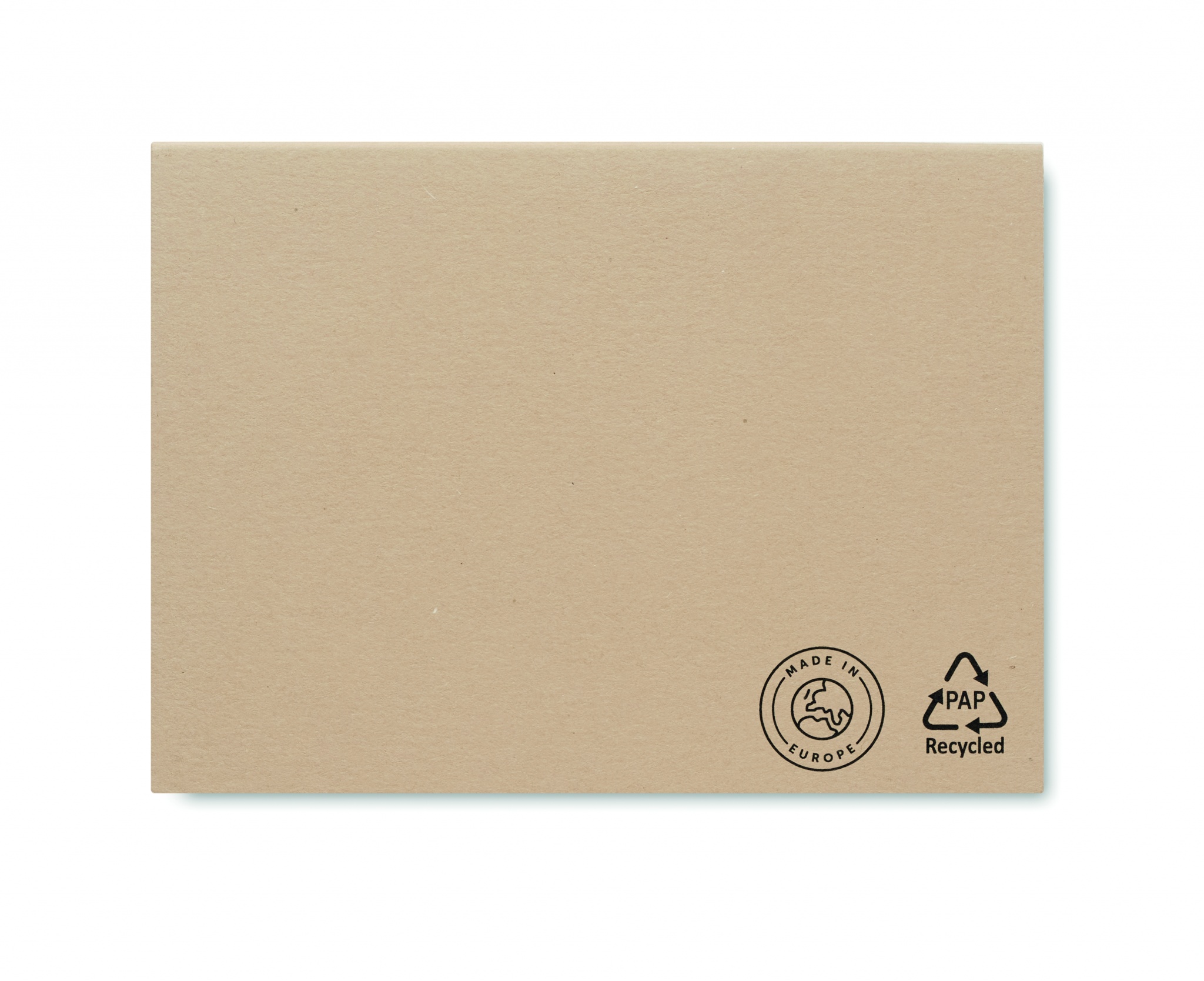 Pehmeä muistilappuvihko kierrätysmateriaalista, sisältää 50 kierrätyspaperiarkkia. Valmistettu EU:ssa.