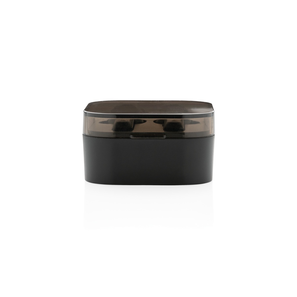 Logotrade liikelahja tuotekuva: Mustat TWS-kuulokkeet ja langaton latauskotelo
