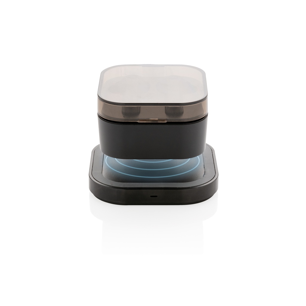Logo trade liikelahjat mainoslahjat kuva: Mustat TWS-kuulokkeet ja langaton latauskotelo