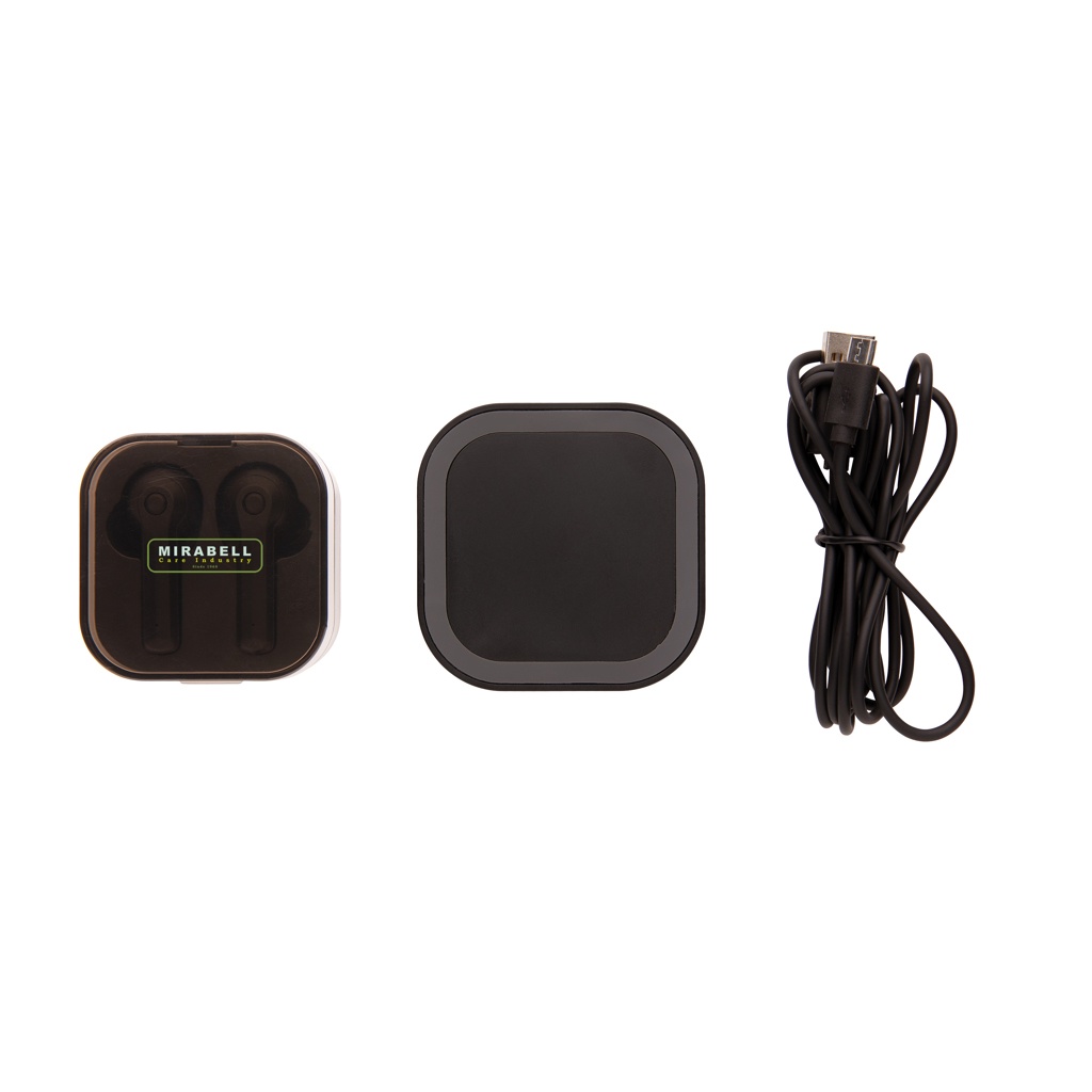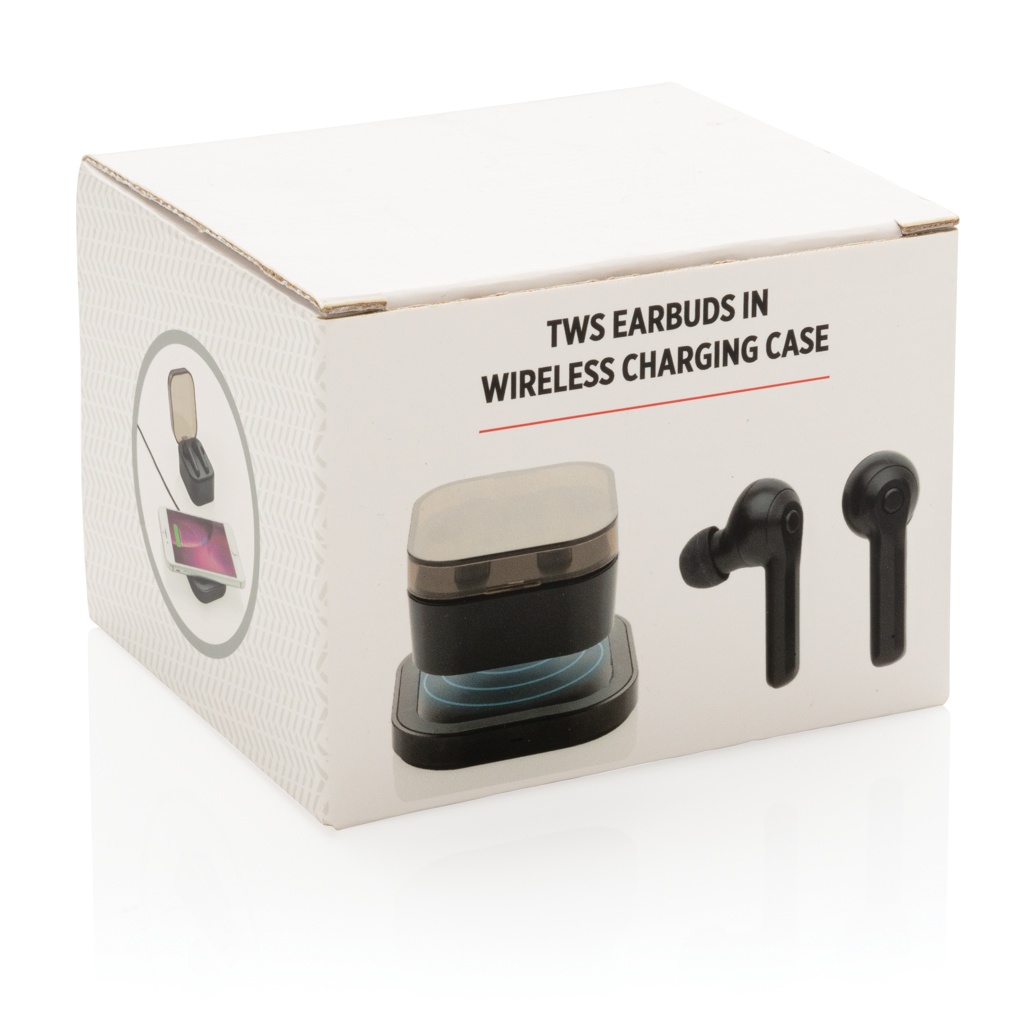 Logo trade liikelahja mainoslahja tuotekuva: Mustat TWS-kuulokkeet ja langaton latauskotelo