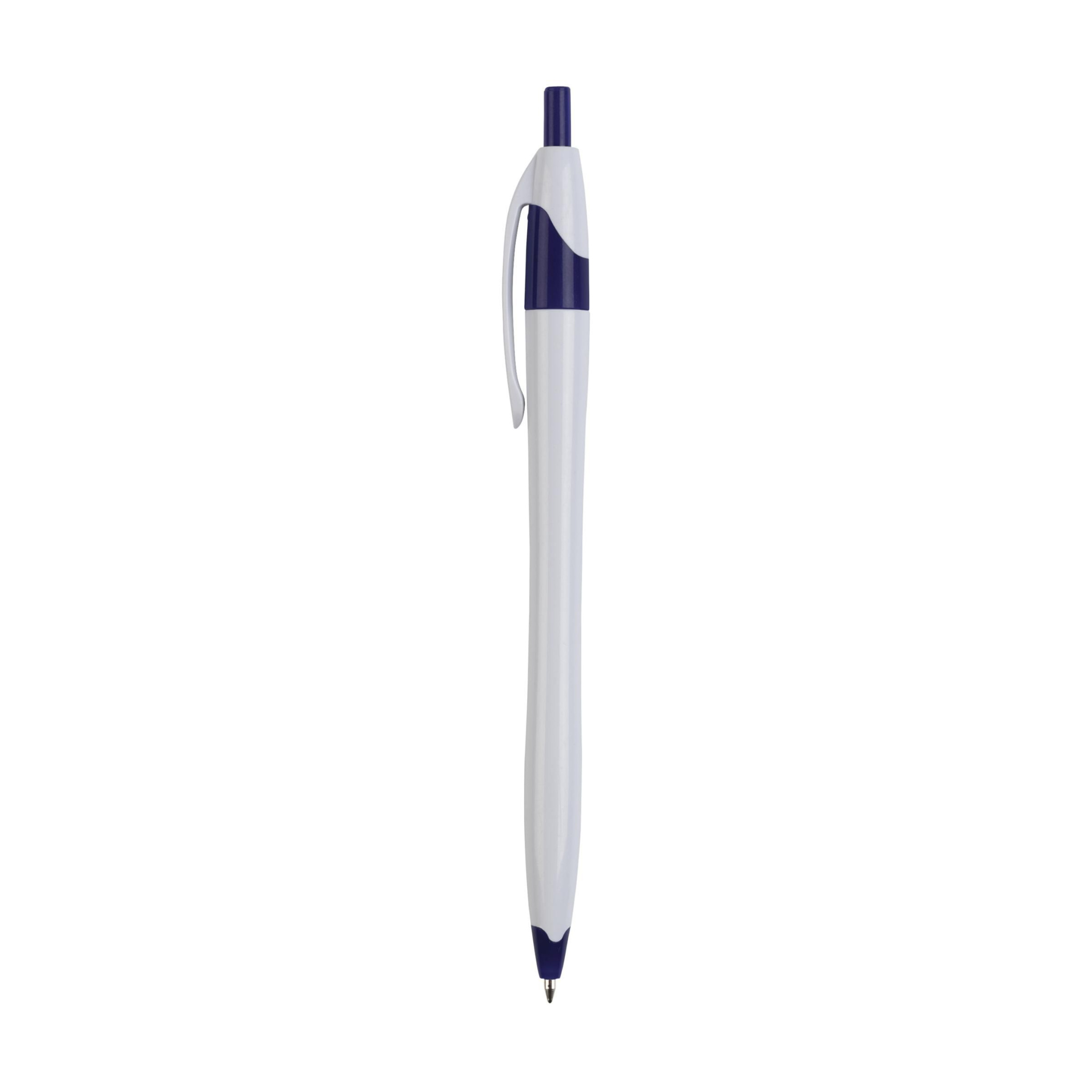 Sinisellä musteella varustettu kuulakärkikynä, jossa värilliset korostukset ja virtaviivainen piippu.