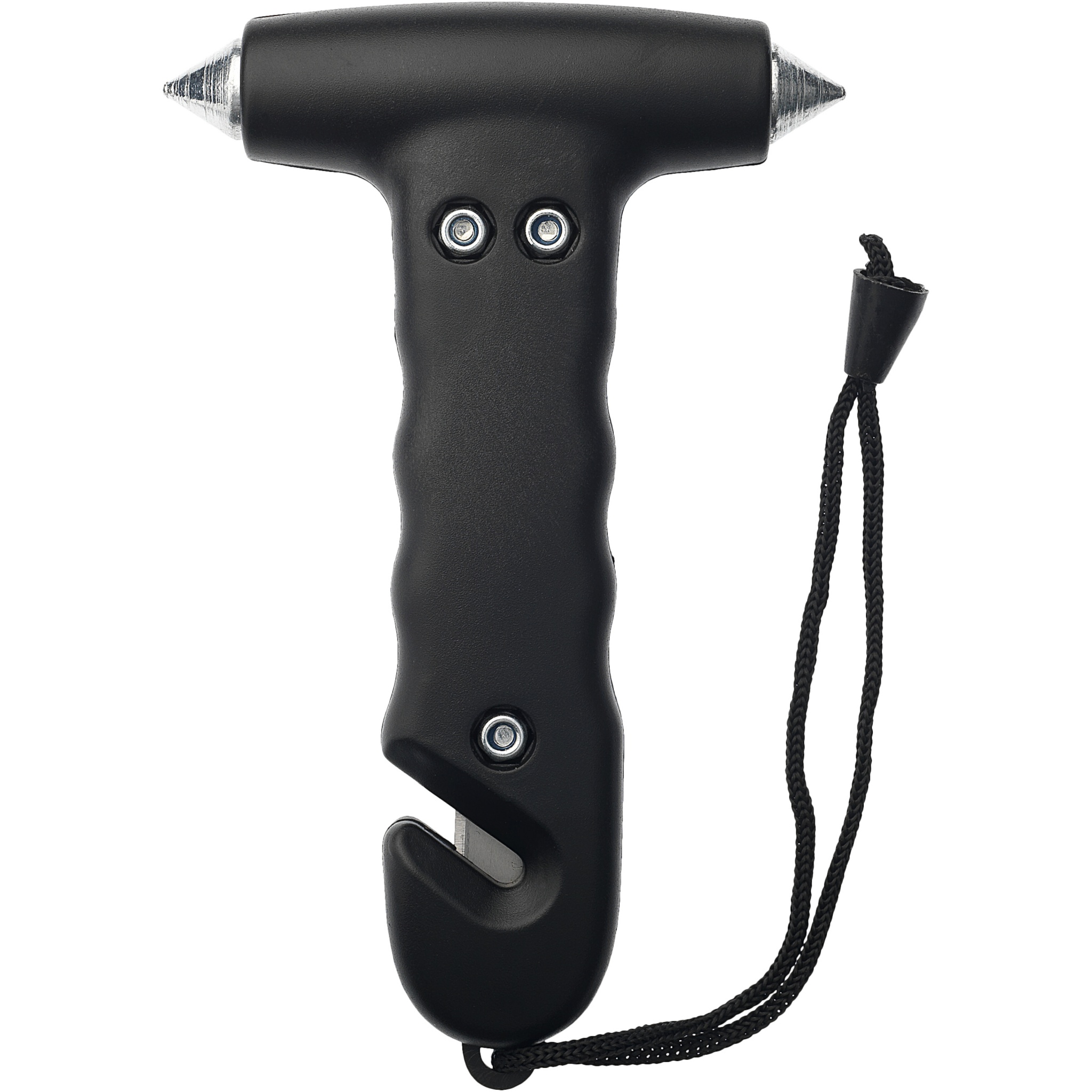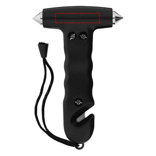 Hätävasara rannehihnalla ja sisäänrakennetulla vyöleikkurilla kahvassa. Kahden karkaistusta teräksestä valmistetun ikkunansärkijän ja hihnaleikkurin avulla pystyt vapautumaan hätätilanteessa.