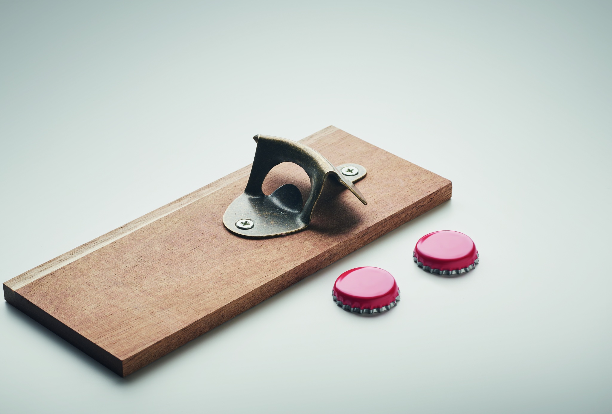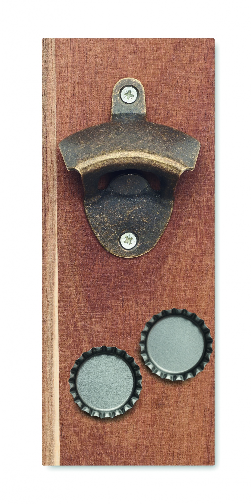 Seinään kiinnitettävä pullonavaaja akaasiapuusta ja raudasta. Avaajassa on voimakas magneetti joka nappaa korkit ja josta avaajan voi kiinnittää jääkaapinoveen tai grilliin.