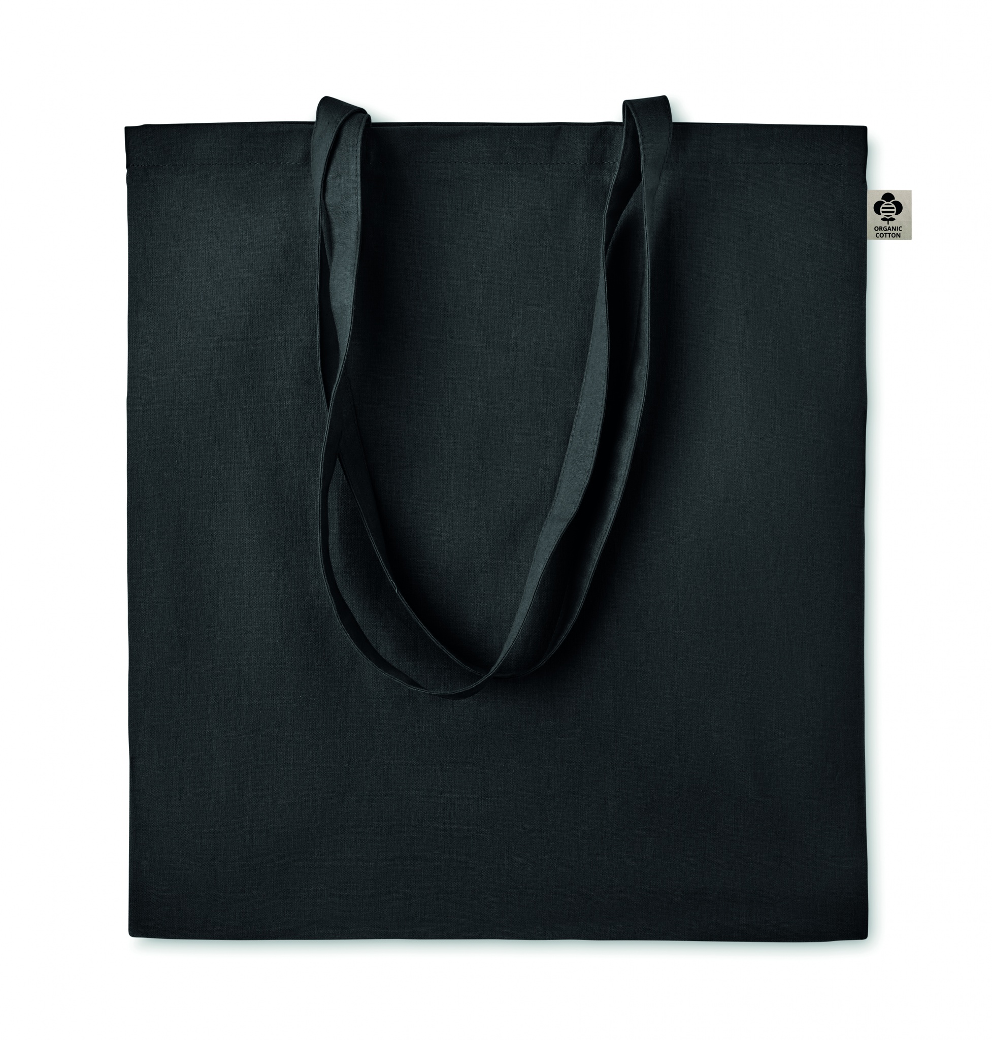 140 gr/m² 100% luomupuuvillasta valmistettu kassi, pitkillä kahvoilla.