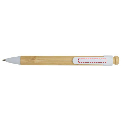 Kuulakärkikynä, jossa on klipsi ja kierrätysmuovista valmistettu kärki sekä bambusta valmistettu painike ja runko. Musteen väri: Musta. Kirjoituspituus: 1000 metriä. Lyijyn paksuus: 1,0 mm.