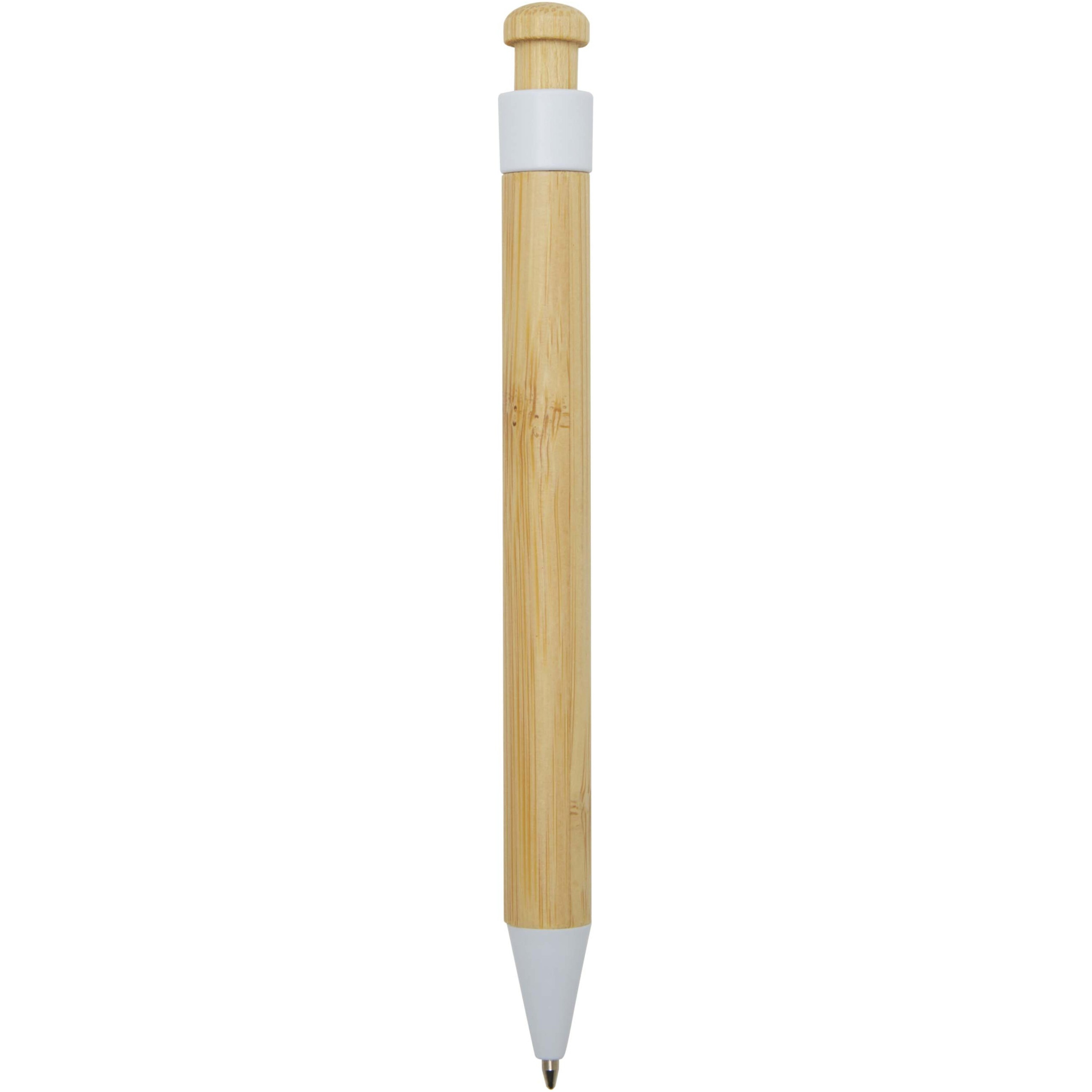 Rattan kuulakärkikynä bambusta ja kierrätysmuovista (musta muste), Valkoinen