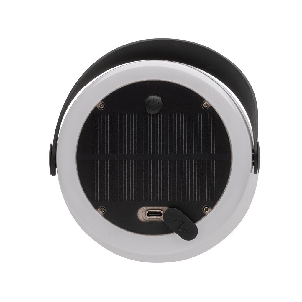 LED pöytävalaisin aurinkokennolla. Valmistettu RCS-sertifioidusta kierrätetystä ABS:stä. Kierrätetyn materiaalin kokonaismäärä: 71% tuotteen kokonaispainosta. RCS-sertifiointi takaa täysin sertifioidun toimitusketjun kierrätysmateriaaleille. Taskulampussa on uudelleenladattava A-luokan 1200 mah litiumakku, joten paristoja ei tarvitse vaihtaa. Lataa vain uudelleen USB-pistokkeen ja integroidun C-tyypin portin kautta. Mukana 80 cm:n latauskaapeli. Latausaika kaapelilla: 3 tuntia. 10 tuntia kirkkaassa auringonvalossa antaa jopa 3-4 tunnin käyttöajan. Käyttöaika täyteen ladattuna: 20 tuntia. IPX 4 vesitiivis.