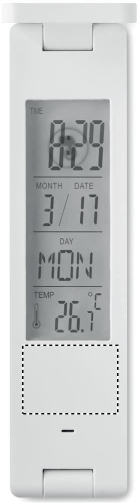 ABS 18 ledin taitettava. Näyttää ajan, lämpötilan ja sisältää herätyskello toiminnon. 1 CR2032 patteri sisältyy toimitukseen.