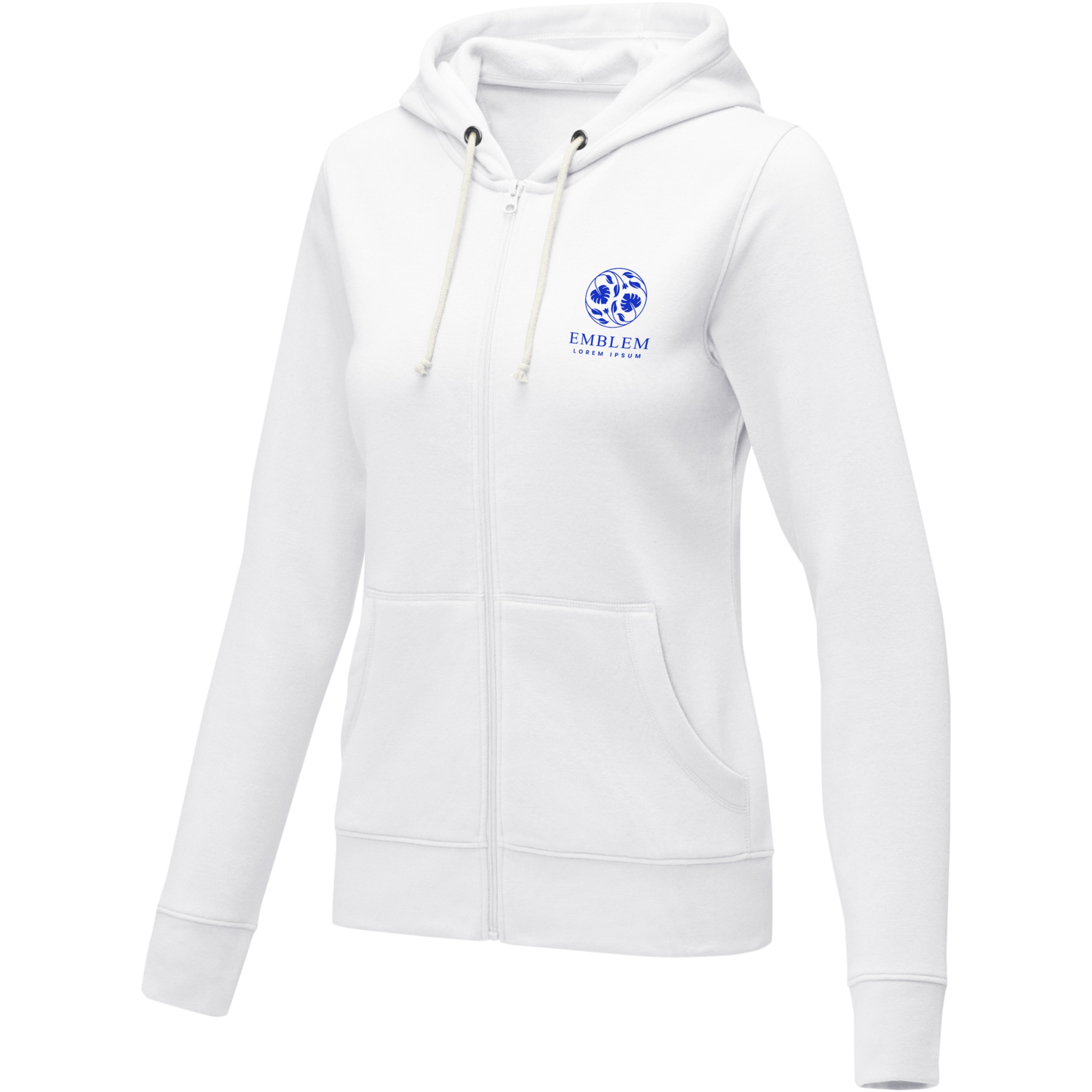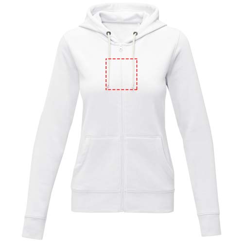 Theron naisten vetoketjuhuppari – yhdistelmä tyyliä ja mukavuutta täydellisessä sopusoinnussa. Tämä huppari on klassisen ja ajattoman mallinen. Hupparin sisäpuolelle on lisäksi mahdollista lisätä yksilöllinen brändäys.Kengurutaskussa yhdistyvät kätevyys sekä moderni ulkonäkö. Neuleresorihelma ja hihansuut varmistavat mukavan istuvuuden, ja harjattu sisäpuoli tuo huppariin lisää pehmeyttä. 240 g/m²:n puuvillasta ja polyesteristä valmistettu kangas on lämmin ja kestävä. Piristä vaatevalikoimaasi Theron-täysvetoketjuhupparilla. Tämä huppari myötäilee vartaloa, mikä antaa sille naisellisen ilmeen.