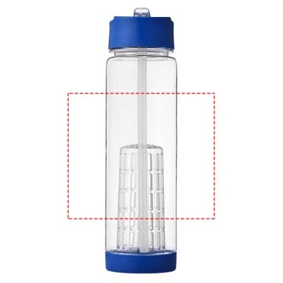 Tutti-frutti on suuri 740 ml:n urheilupullo, jossa on mukana infuusori. Voit lisätä kierrettävään infuusoriin mitä tahansa yrttejä tai hedelmiä maukkaan juoman valmistamista varten. Pulloa on helppo käyttää kierrettävän kannen ansiosta, jossa on käännettävä juomaläppä. Kierrä pohja irti, jotta pääset käsiksi infuusoriin ja voit puhdistaa sen helposti. Juomapullo on valmistettu Eastman Tritan™ -materiaalista, joten se on BPA-vapaa, kevyt, kestävä, hajuton ja iskunkestävä.