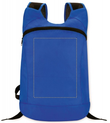 Kokoontaitettava urheilureppu ripstop-polyesteristä, vetoketju edessä ja verkkovuoratut olkahihnat, sisältää irroitettavan pienen pussin.