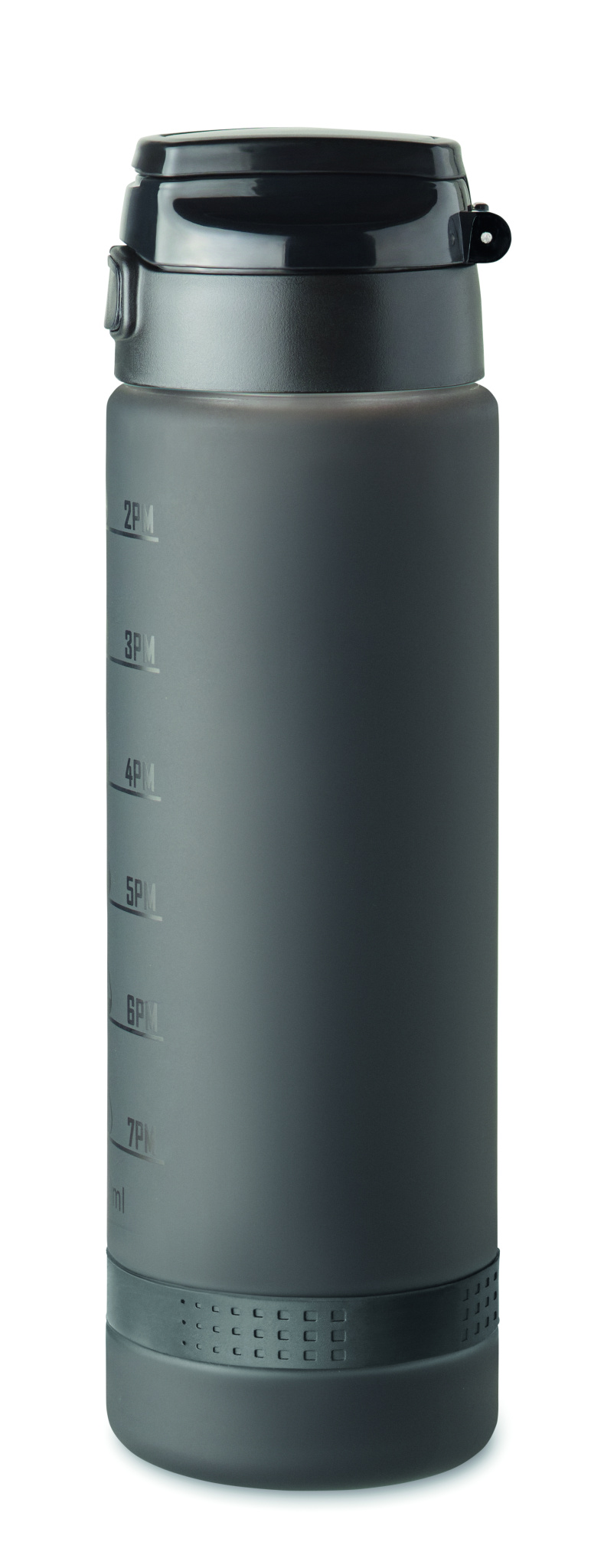 Urheiluvesipullo RPET-materiaalia, motivaatioaikamerkinnät, yhdellä kädellä avattava läppäkansi, turvalukko ja kantohihna. Tilavuus: 1L.