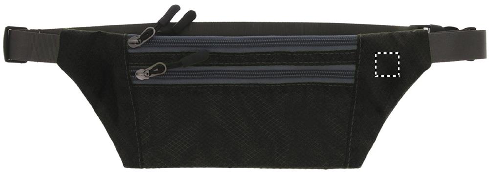 Jakardi polyesteri vyölaukku, edessä 2 vetoketjullista taskua ja takana 1 vetoketjullinen tasku, säädettävä vyötäröhihna.