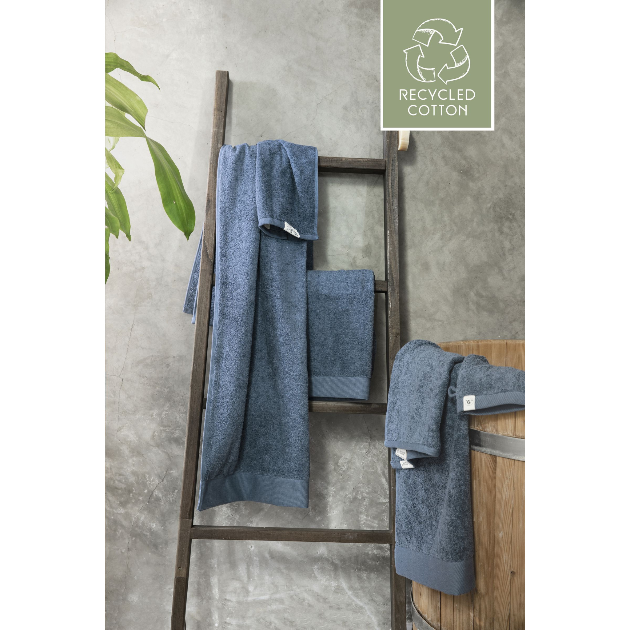 Tyylikäs pyyhe Walra-brändiltä. Valmistettu 70 % kierrätetystä puuvillasta ja 30 % puuvillasta (550 g/m²). Tässä pyyhkeessä on hieno rakenne, tyylikäs reunus ja kätevä ripustuslenkki. Ihanan pehmeä, imukykyinen ja kestävä. Tämä tuote on Öko-tex-sertifioitu. Näiden kylpyhuonetekstiilien valmistusprosessi säästää vettä ja vähentää CO2-päästöjä ja energiaa materiaalien uudelleenkäytön ansiosta. Tämän vahvistaa riippumaton REMO-laatumerkki.