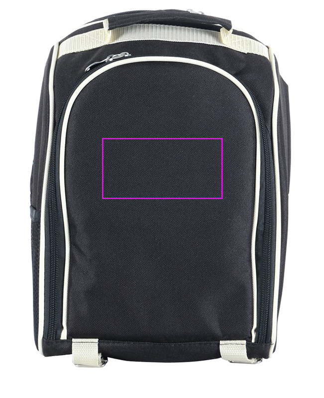 Ylellinen piknik-reppu. Laadukas kestävä polyesteristä valmistettu ulkomateriaali ja sen tiiviys tekevät siitä todella upean esineen. Mutta se tarjoaa vielä enemmän: jäähdytysosaston takana ja tilavan sisäosaston, jossa on erinomaiset varusteet, kuten ruostumattomasta teräksestä valmistettu 1 litran eristyspullo, kaksi 0,2 litran ruostumattomasta teräksestä valmistettua kuppia, ruostumattomasta teräksestä valmistetut suola- ja pippurisirottimet, välipalatarjotin, ruokailuvälineet ja lautasliinat. Laitamme logosi etulokeroon.