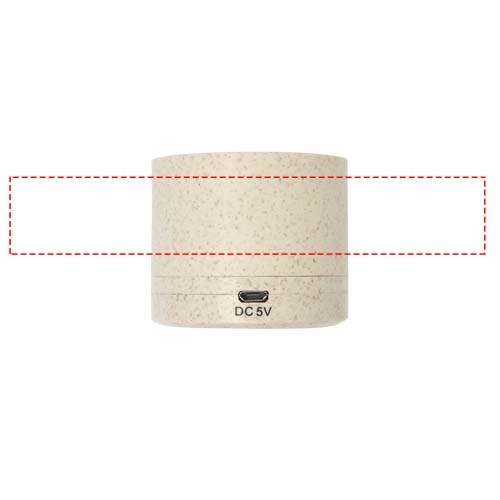 Bluetooth® garsiakalbių dėklas, pagamintas iš kviečių šiaudų ir plastikinės medžiagos, sumaišytos, sumažinant reikalingo plastiko kiekį. Garsiakalbis atkuria krištolo skaidrumo garsą daugiau nei 1,5 valandos atkūrimo metu maksimaliu garsumu ir 3 W išvestimi. Bluetooth® 5.0. Supakuota į dovanų dėžutę ir pristatoma su naudojimo instrukcija (abi pagamintos iš tvarios medžiagos). Pridedamas mikro-USB įkrovimo laidas.