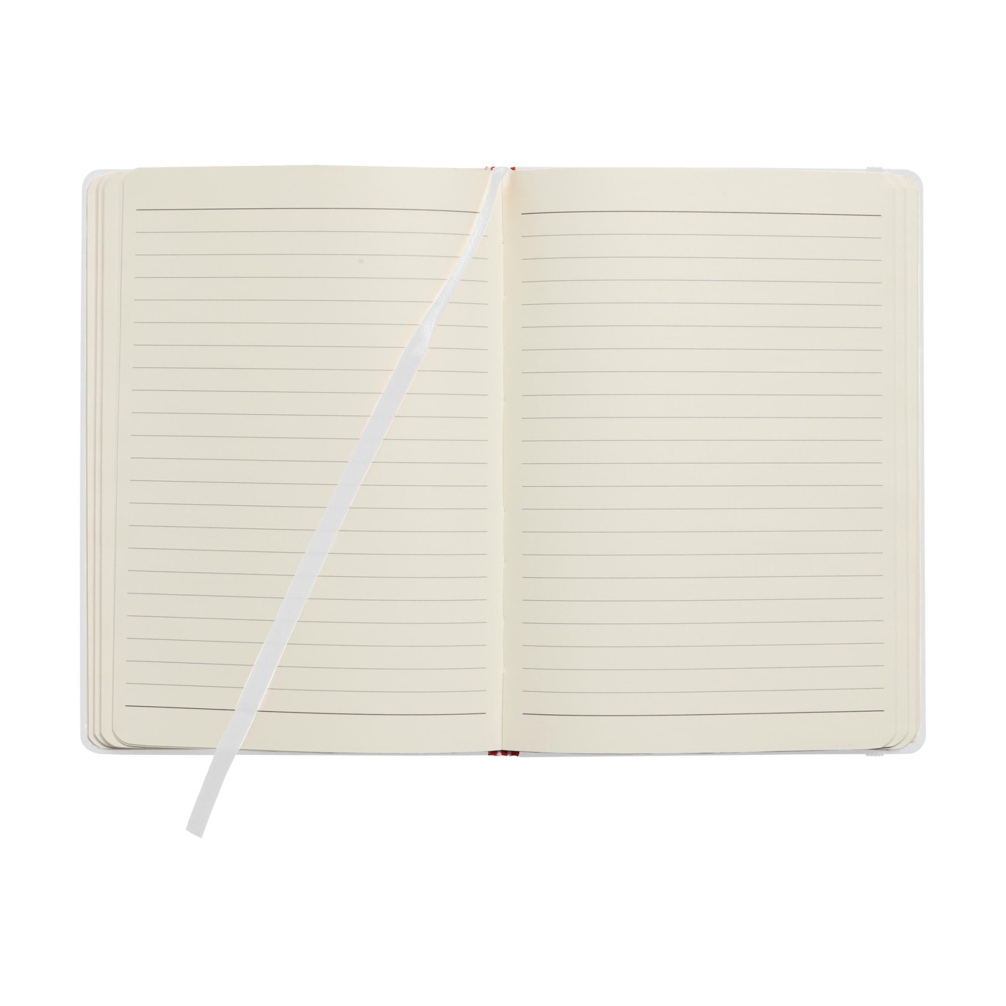 A4 formato sąsiuvinis, kuriame yra 96 lapai/196 puslapiai kreminės spalvos, linijinio popieriaus (80 g/m²). Su tobulu įrišimu, kietu viršeliu, elastine užsegimu ir šilkine juostele.