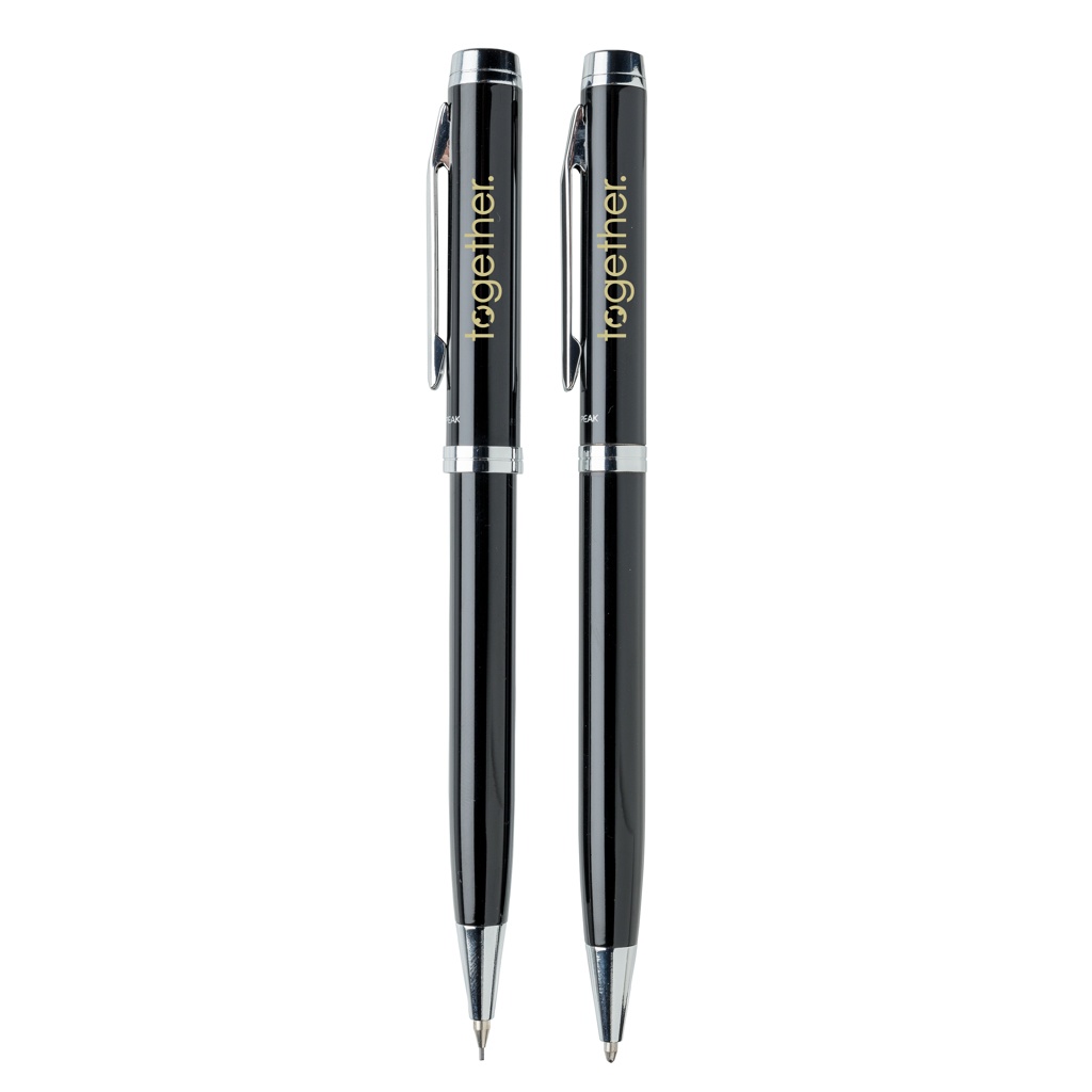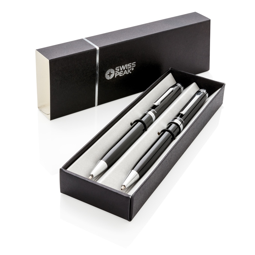 Šis rašiklių rinkinys su tušinuku ir pieštuku yra žinomas dėl savo kokybės ir elegancijos. Tiekiamas su 1200 m rašymo užpildu vokišku rašalu ir pieštuku su 3 0,7 mm laidais. Supakuota Swiss Peak dovanų dėžutėje.