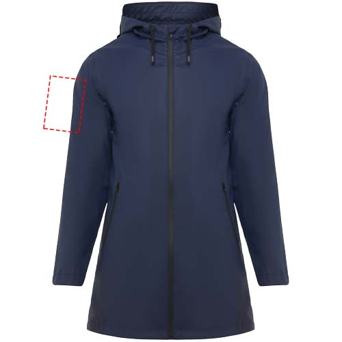 Neperšlampamas lietpaltis moterims. Gaubtas su smaigaliu. Termiškai sandarinami užtrauktukai ir siūlės. Juodos spalvos kontrastingos detalės. Dvi šoninės kišenės su užtrauktuku. Skeltukas nugaroje. Nuimama etiketė. Atsparus vandeniui. Modelis yra 179 cm ūgio ir dėvi S dydį.
