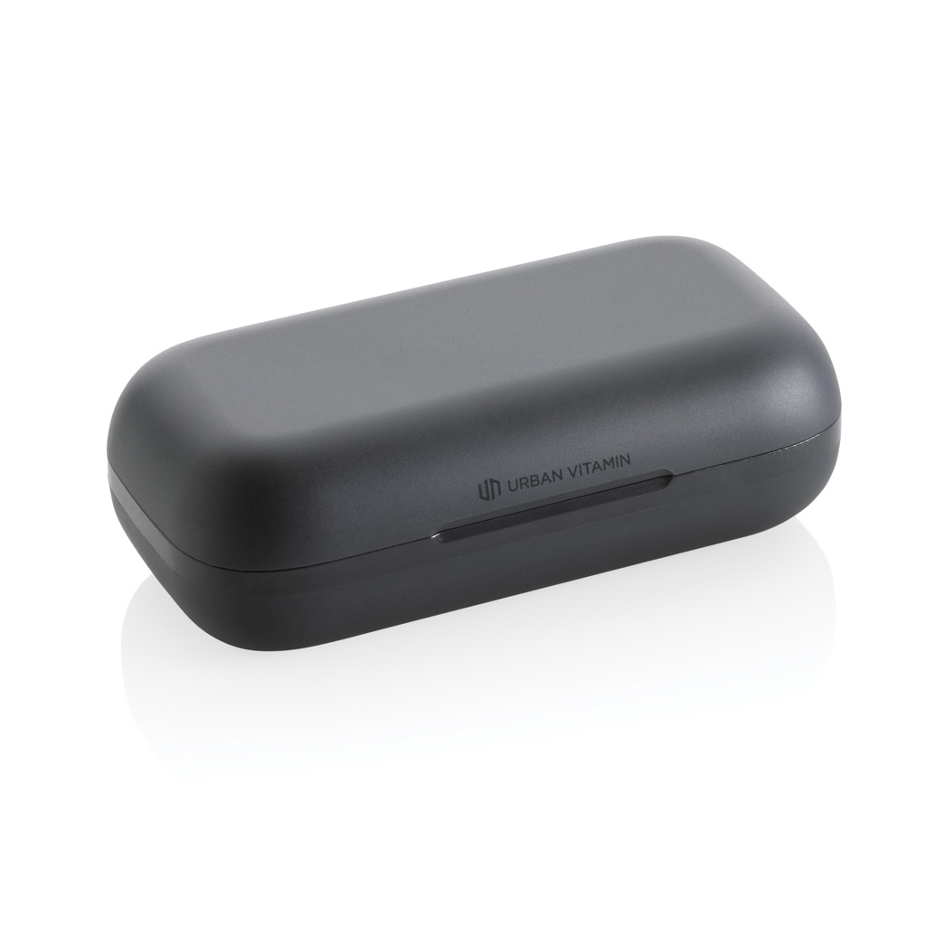 Pralenkkite save ir pakelkite savo kūno rengybą į kitą lygį naudodami šias puikiai tinkančias treniruočių ausines. Pritaikomi, puikiai tinkantys ausų kabliukai yra reguliuojami su keliais ausų antgaliais, kad būtų patogiau, ir yra sukurti taip, kad liktų vietoje, kad ir kokia intensyvi būtų jūsų treniruotė. Šios lengvos ausinės sukurtos maksimaliam našumui, o tvirtos konstrukcijos, atsparios prakaitui, dulkėms ir vandeniui, IPX5. Dėl pažangios BT 5.3 kiekvienoje ausinėje ir galingo, subalansuoto garso klausymosi laikas iki 8 valandų, todėl muzika visada jus motyvuos. Ausinės ir 600 mAh įkrovimo dėklas pagaminti iš RCS (Recycled Claim Standard) sertifikuoto perdirbto ABS/TPE. Bendras perdirbtas kiekis: 55 % nuo bendros prekės svorio. RCS sertifikatas užtikrina visiškai sertifikuotą perdirbtų medžiagų tiekimo grandinę. Įkrovimo dėkle ausinės gali būti visiškai įkraunamos 3 kartus. „Urban Vitamin“ gaminiai gaminami be PVC ir supakuoti į sumažintą plastikinę pakuotę.
