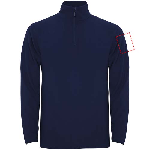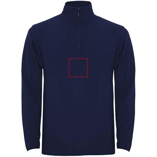 Mikroflīss ar pusi rāvējslēdzēju kakla un zoda aizsargos. Manšetes ar pieskaņotu elastīgu apdari. Noņemama etiķete. Modelis ir 190 cm garš un valkā L izmēru.