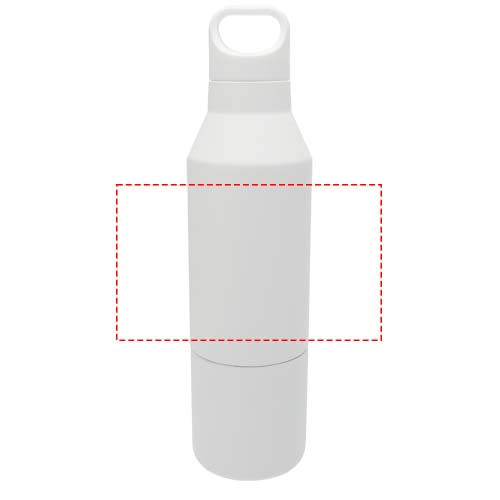 RCS sertificēta nerūsējošā tērauda dubultsienu vara izolēta pudele ar noņemamu kausu. Šī daudzfunkcionālā pudele ir paredzēta, lai ietilptu mugursomas sānu kabatā, un tai ir ērts pārnēsāšanas rokturis, kas ir integrēts vāciņā. Izturīgs jaudas pārklājums ārpusē. Uztur dzērienus karstus 12 stundas vai aukstus 24 stundas. Prezentēts pārstrādāta kartona dāvanu kastītē. Pudeles tilpums: 600 ml. Krūzes tilpums: 300 ml.