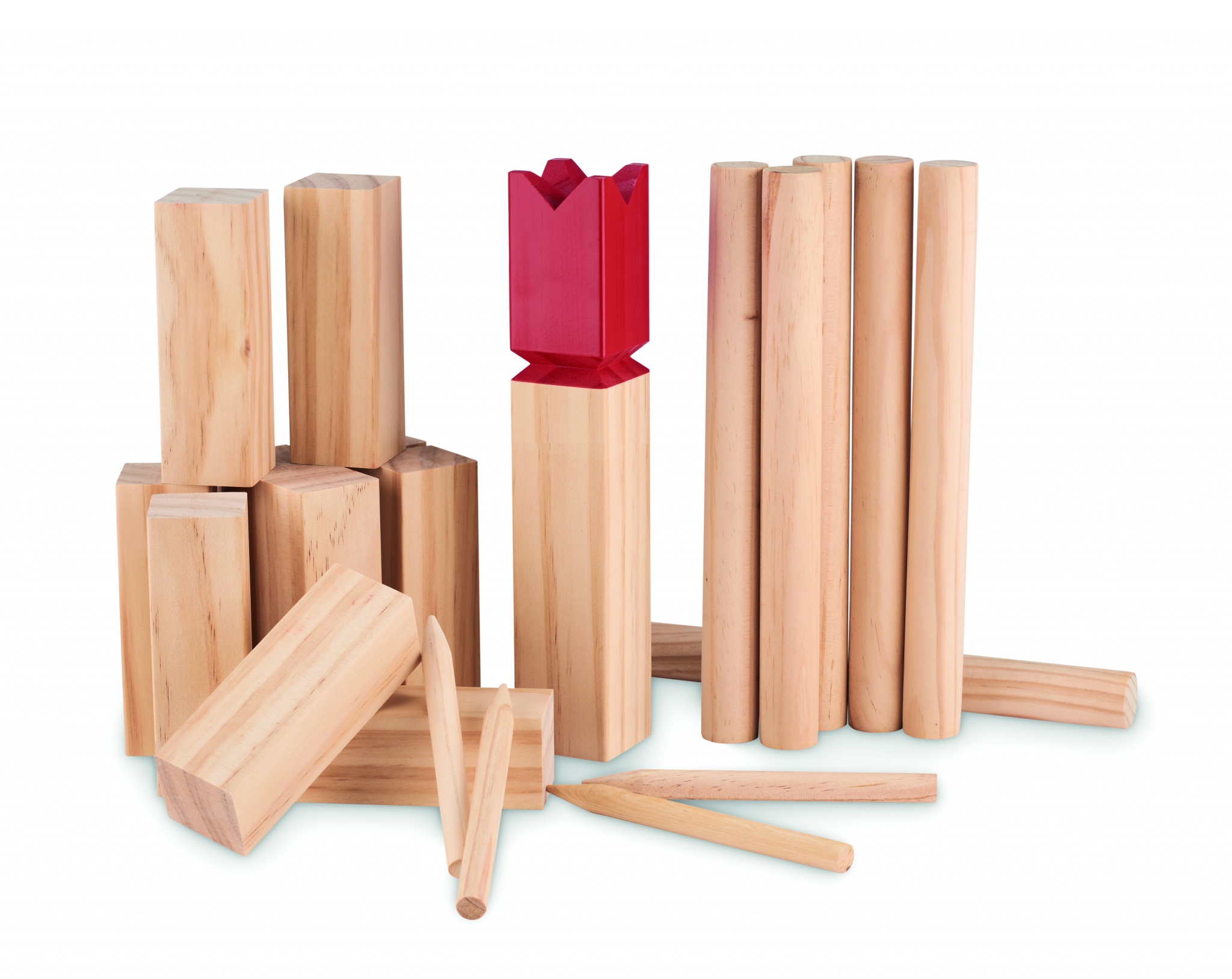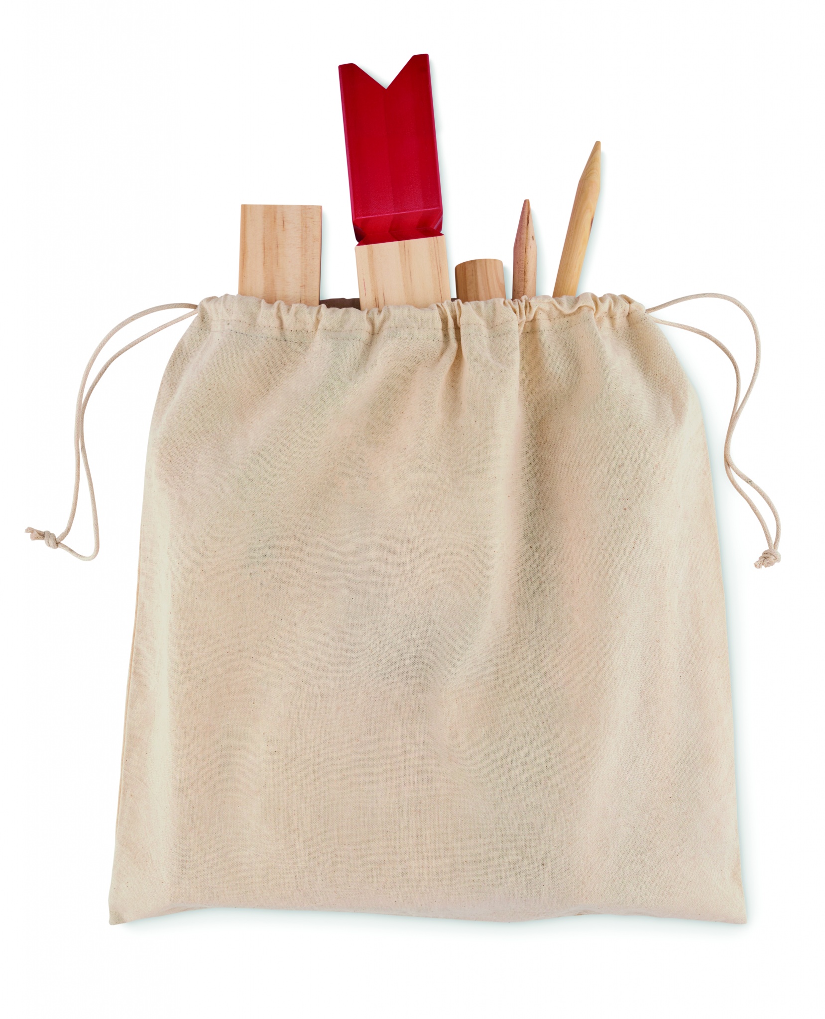 Priedes koka mešanas spēle kokvilnas auklas maisiņā. Ietver 10 gab. īsu kvadrātveida nūju, 4 gab. smailu nūju, 6 gab. apaļu nūju un 1 gab.