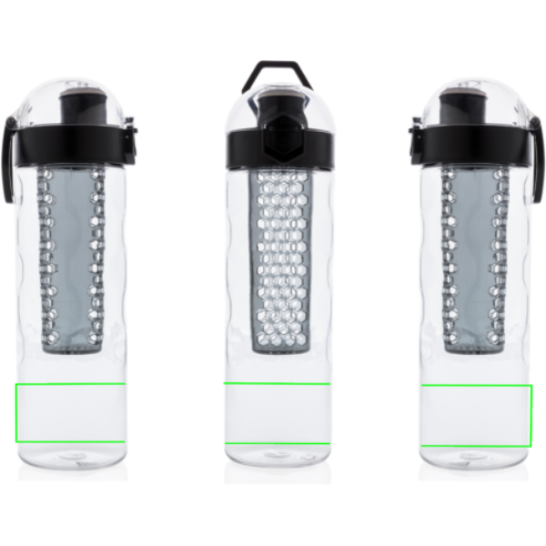 Pievienojiet savam ūdenim veselīgu augļu garšu. Šī dizaina pudele ar šūnveida detaļām piedāvā ērtu dzeršanu ar vienu roku. Nospiediet pogu, un vāks atvērsies. Ir īpašs bloķēšanas mehānisms, lai neļautu lietotājiem nejauši nospiest pogu. Ieskaitot pārnēsāšanas rokturi. Šī infūzijas pudele ir izgatavota no izturīga un inovatīva tritāna materiāla. Bez smaržas un 100% BPA. Saturs 700ml. Reģistrēts dizains®